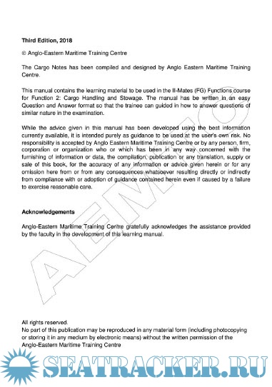 Year: 2018 Language: english Author: AEMTC Genre: Training courses Publisher: Anglo Eastern Maritime Training Centre (AEMTC) Edition: 3rd Format: PDF Quality: OCR with errors Pages count: 220 Description: Second Mates FG Course Booklet containing Questions and Answer on Cargo Handling and Stowage.