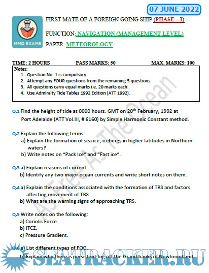 Question Paper Set for Phase II (Chief Mate F.G.) Mercantile Marine Department (MMD), India…