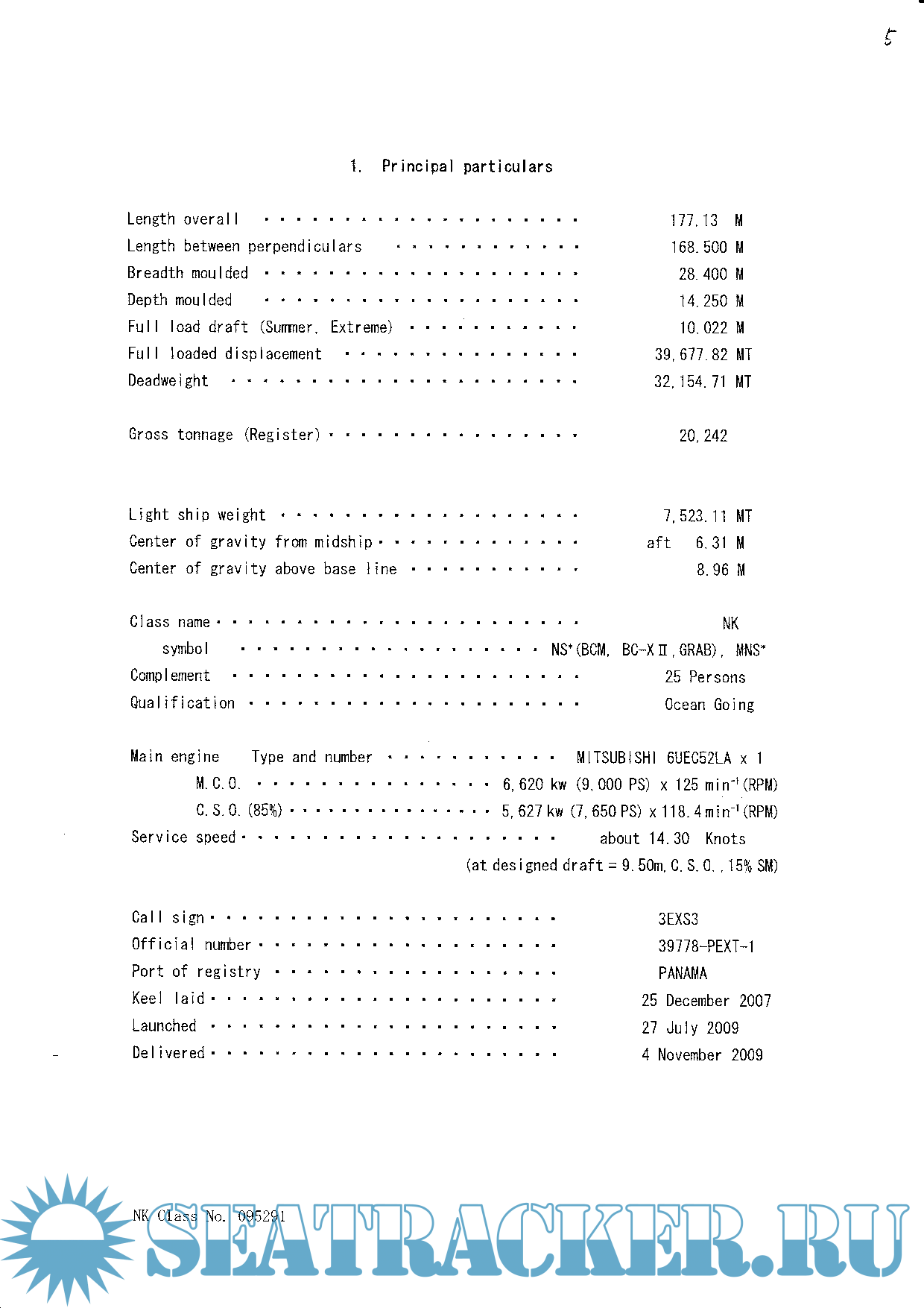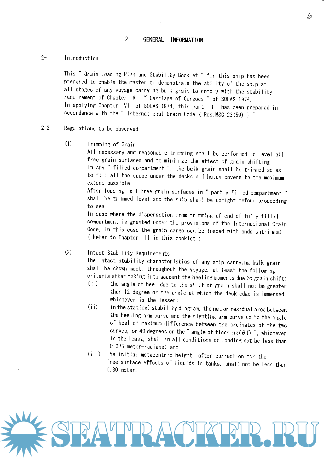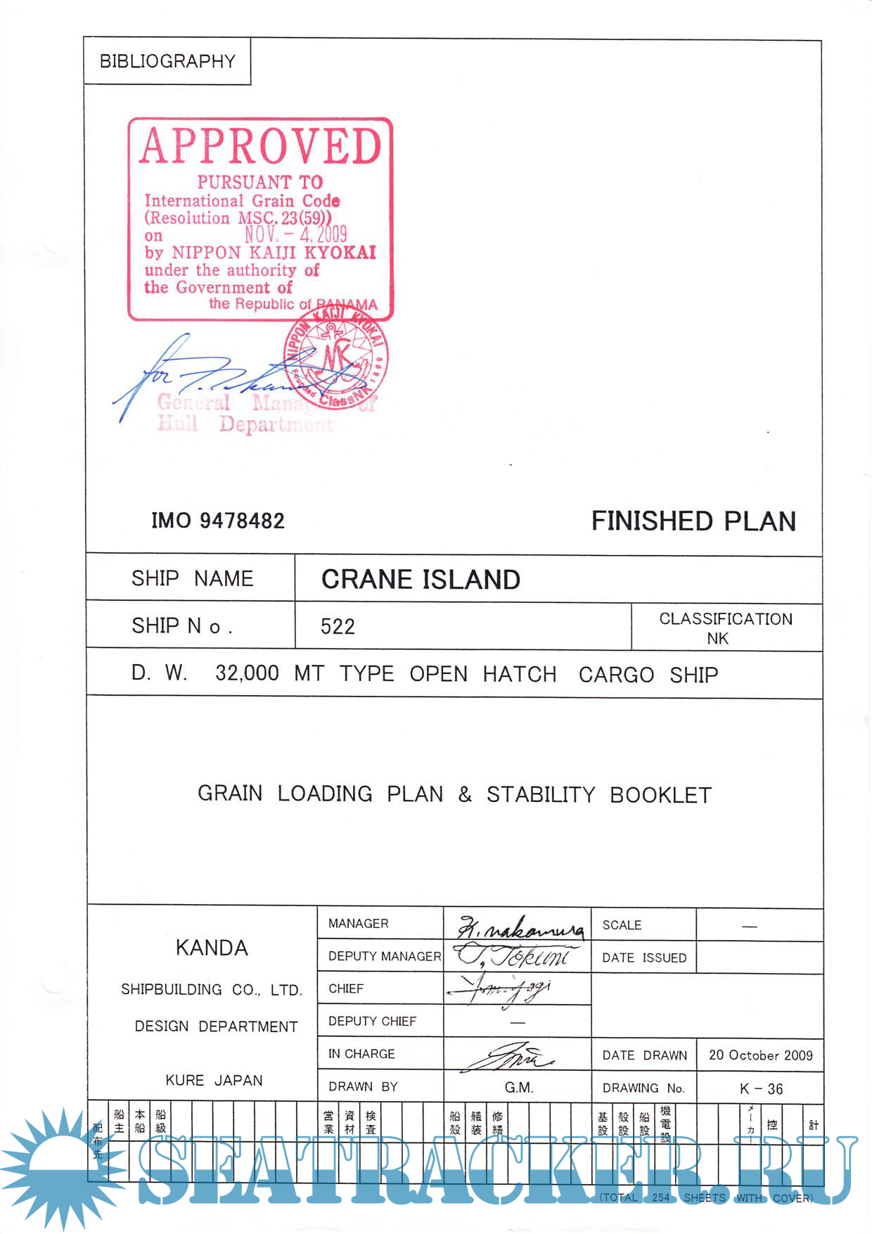 Mv Crane Island - IMO 947848 - Grain Loadins Plan and stability Booklet