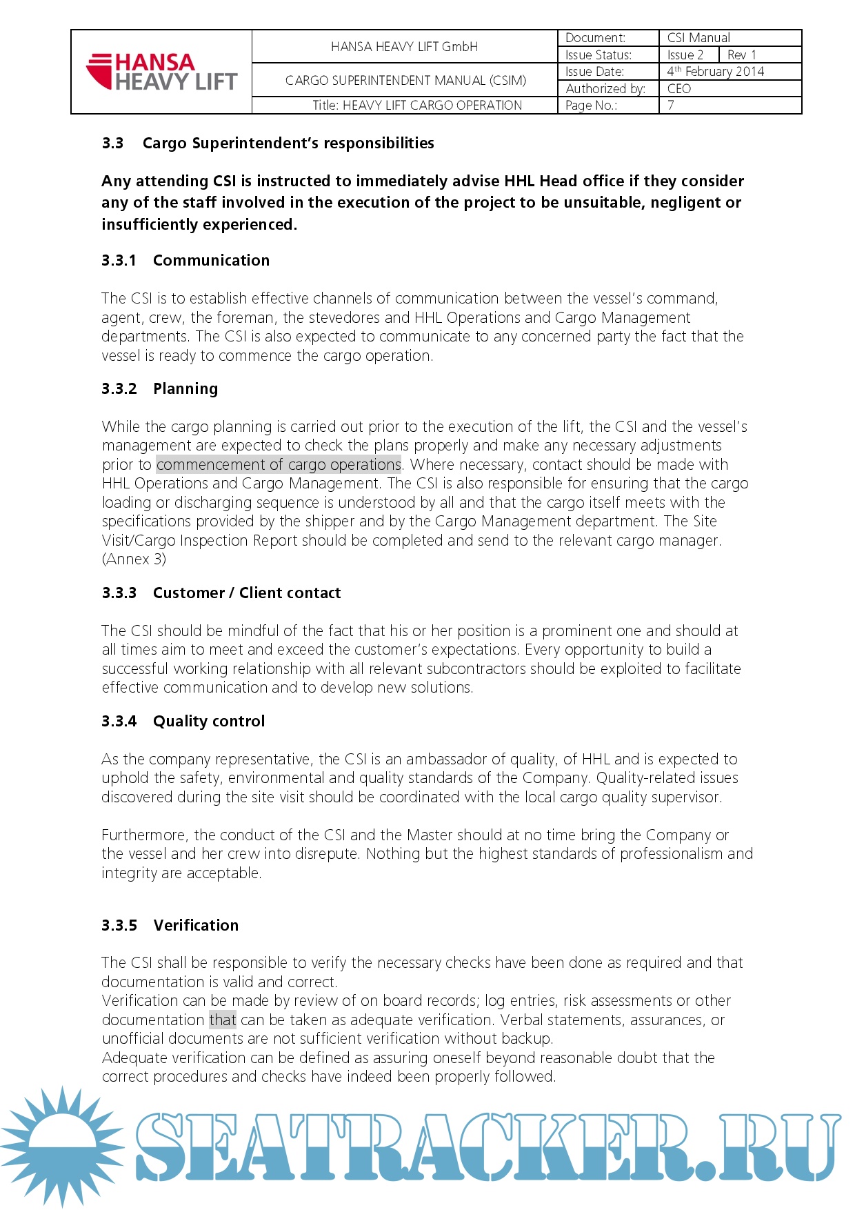 HANSA HEAVY LIFT - CARGO SUPERINTENDENT MANUAL (CSIM)