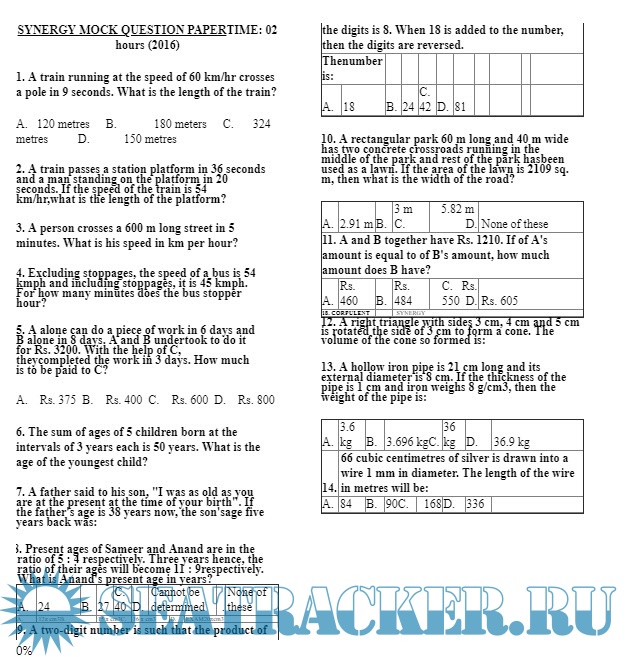 Synergy Exam Previous Year Questions for TME Cadets