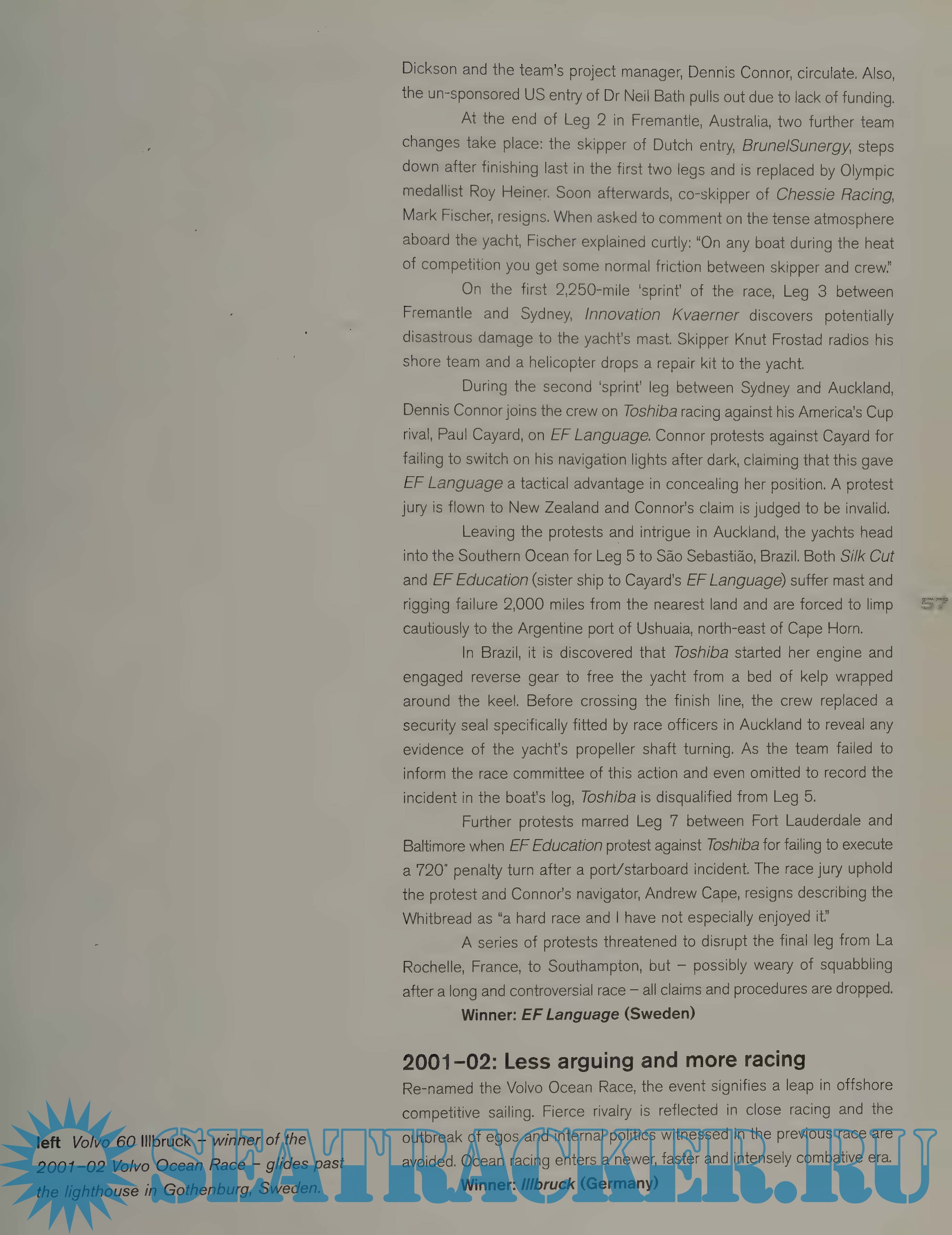 Year: 2006 Language: english Author: Dame Ellen MacArthur, Oliver Dewar Genre: Textbook Publisher: Pavilion Edition: First ISBN: 978-1862057289 Format: PDF Quality: OCR without errors Pages count: 168 Description: The subculture of sailing thrives on adrenaline, with sailors vying to see just how far they can push their boats and crew. Today’s competitors have an insatiable desire to smash records and make history, as they conquer treacherous waters and near-impossible weather conditions. And maritime marathons, in which sailors race to circumnavigate the globe, are drawing more and more fearless competitors. This stunning book offers a look at sailing’s most extreme feats—including The America’s Cup, the Vendée Globe, the Sydney-Hobart, and the Ostar—with spectacular color photographs capturing the true spirit of the sport. Extreme Sail also features an engaging text, commentary from those who have competed in extreme events, and a directory of all the races, events, and competitions featured in the book