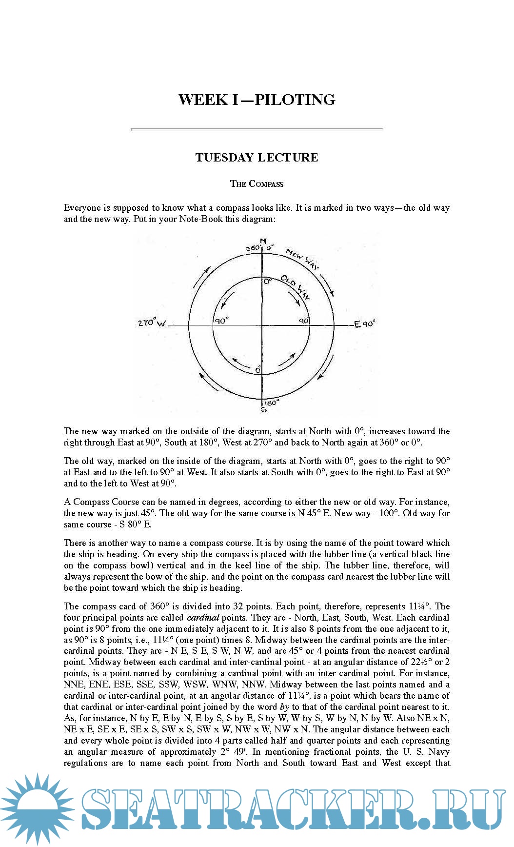 Year: 2008 Language: english Author: Ernest Gallaudet Draper Genre: Training courses Publisher: Project Gutenberg Edition: Dec 28, 2008 Format: EPUB/PDF Quality: eBook Pages count: 115 Description: These lectures have been written with the idea of explaining, in as simple language as possible, the fundamental elements of Navigation as set forth in Bowditch's American Practical Navigator. They will be given you during the time at the Training School devoted to this subject. At present this time includes two morning periods of one and a half hours each, separated by a recess of fifteen minutes. In general the plan is to devote the first period to the lecture and the second period to practical work. Not many examples for practical work have been included in this book, but one example, illustrating each new method, has been worked out. If you understand these examples you should be able to understand others similar to them. Toward the end of the course a portion of each second period will bedevoted to handling the sextant, work with charts, taking sights, etc. In short, every effort will be made to duplicate, as nearly as possible, navigating conditions on board a modern merchant ship.