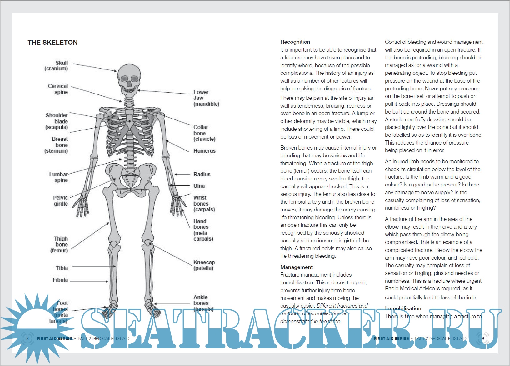 Year: 2009 Language: english Author: Videotel Genre: Practical guide Publisher: Videotel ISBN: - Format: PDF Quality: eBook Pages count: 40 Description: This workbook has been written to accompany the second video in the First Aid series, Medical First Aid (STCW Code Section A -VI/4-1). The video and this workbook will assist with the underpinning knowledge of fi rst aid but it is important to remember that fi rst aid requires practical skills. This programme supports, but does not replace, statutory fi rst aid training required by seafarers under the STCW code. The first part in the First Aid Series, Elementary First Aid, dealt with the basic immediate first aid that all seafarers need to be familiar with, and will have undertaken training in, to satisfy the fi rst aid training requirements in accordance with the STCW code. (STCW Code Section A -VI/1-3). It showed the fi rst aid that all seafarers need to know to be able to manage a situation when it occurs and take the necessary actions to potentially save a life. These are: ★ Managing the incident ★ Resuscitation techniques ★ The unconscious casualty ★ Monitoring a casualty ★ Shock ★ Bleeding ★ Burns ★ Moving a casualty This second part in the series looks at a variety of injuries and illnesses that seafarers may need to have knowledge of. It includes major and minor injury as well as dealing with sudden illness. It covers fi rst aid training requirements in accordance with the STCW Code (STCW Code Section A -VI/4-1). It is important to remember that some fi rst aid situations will always need immediate action to be taken, but that the continuing fi rst aid will be carried out by offi cers on board ship who have completed additional fi rst aid and medical training. The fi rst aider then becomes an assistant in the situation and follows instructions given. In some instances action may not be taken until Radio Medical Advice (RMA) has been sought. In all the examples shown in the accompanying video, the fi rst aider will always carry out DR ABC. They will assess the scene to establish what happened and to ensure it is safe, and they will assess, treat, and monitor the casualty.