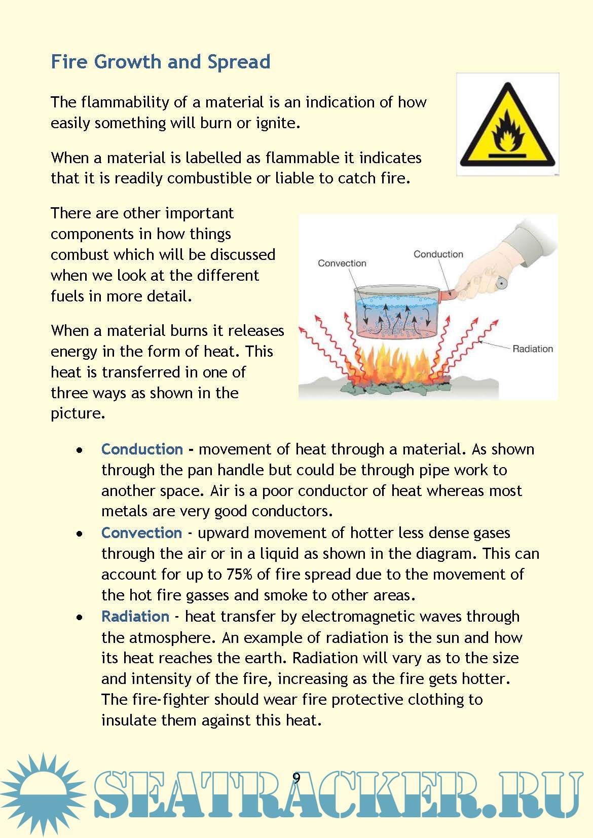 It deals with the theory of fire and how to prevent it, onboard safety in the event of a fire, use of portable
