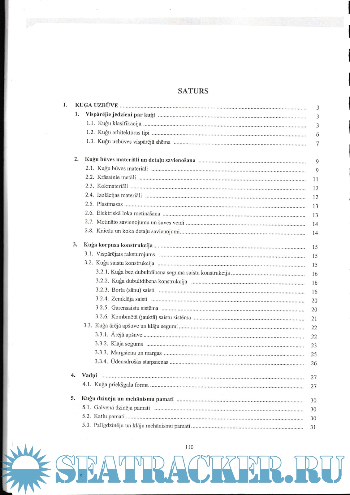 korpusa un tā atsevišķo elementu konstrukcija; otrajā - kuģa ierīces, to veidi, konstrukcija un