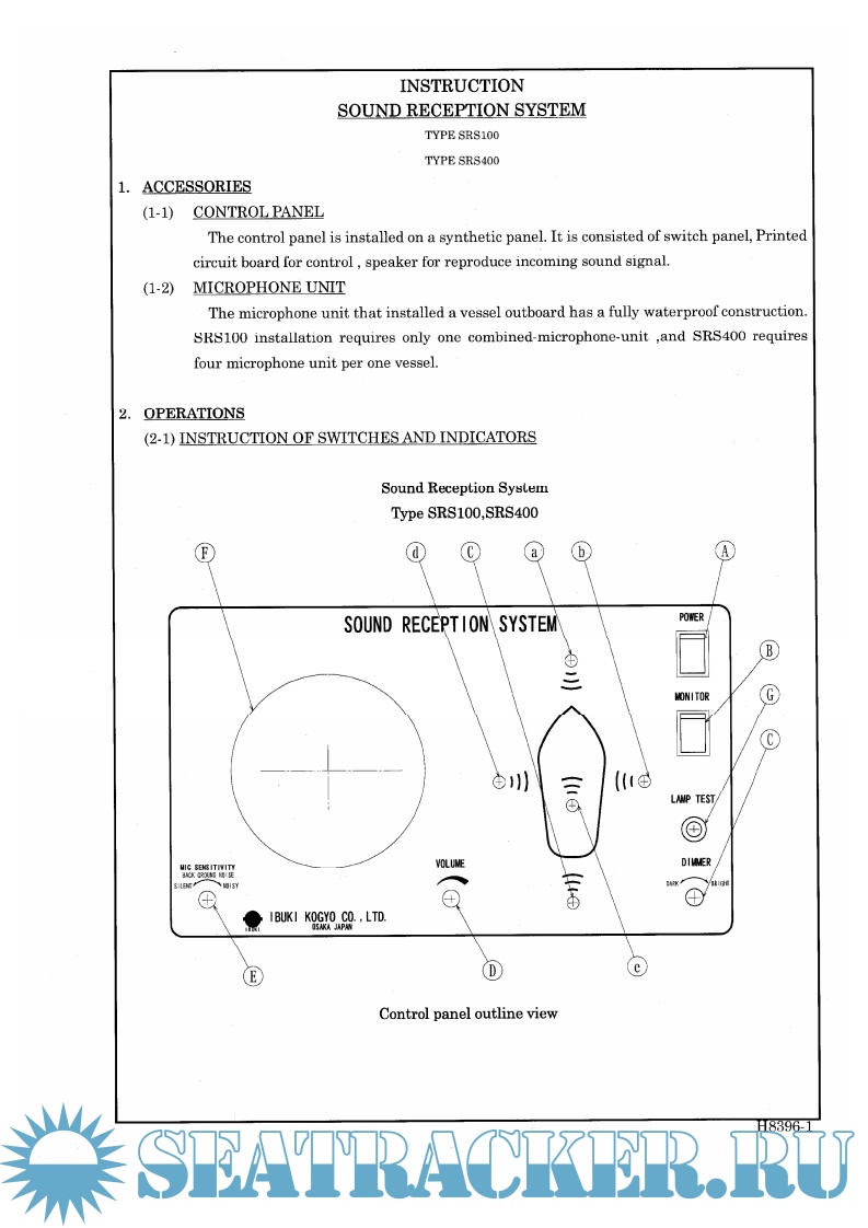Description: The Sound Reception System are acoustical electronic navigational aids to еnаЫе the officer on the watch to hear outside sound signals inside the enclosed bridge.