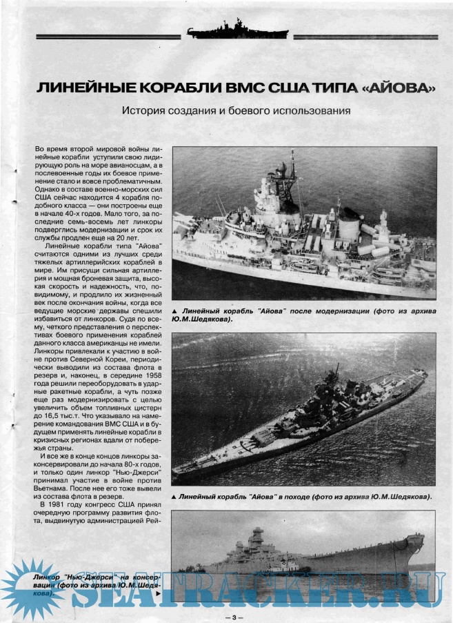 Описание линейных кораблей ВМС США типа "Айова" на 35-ти страницах