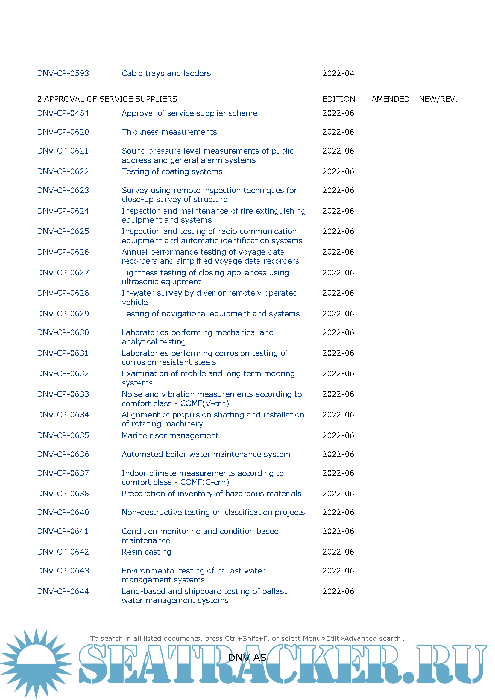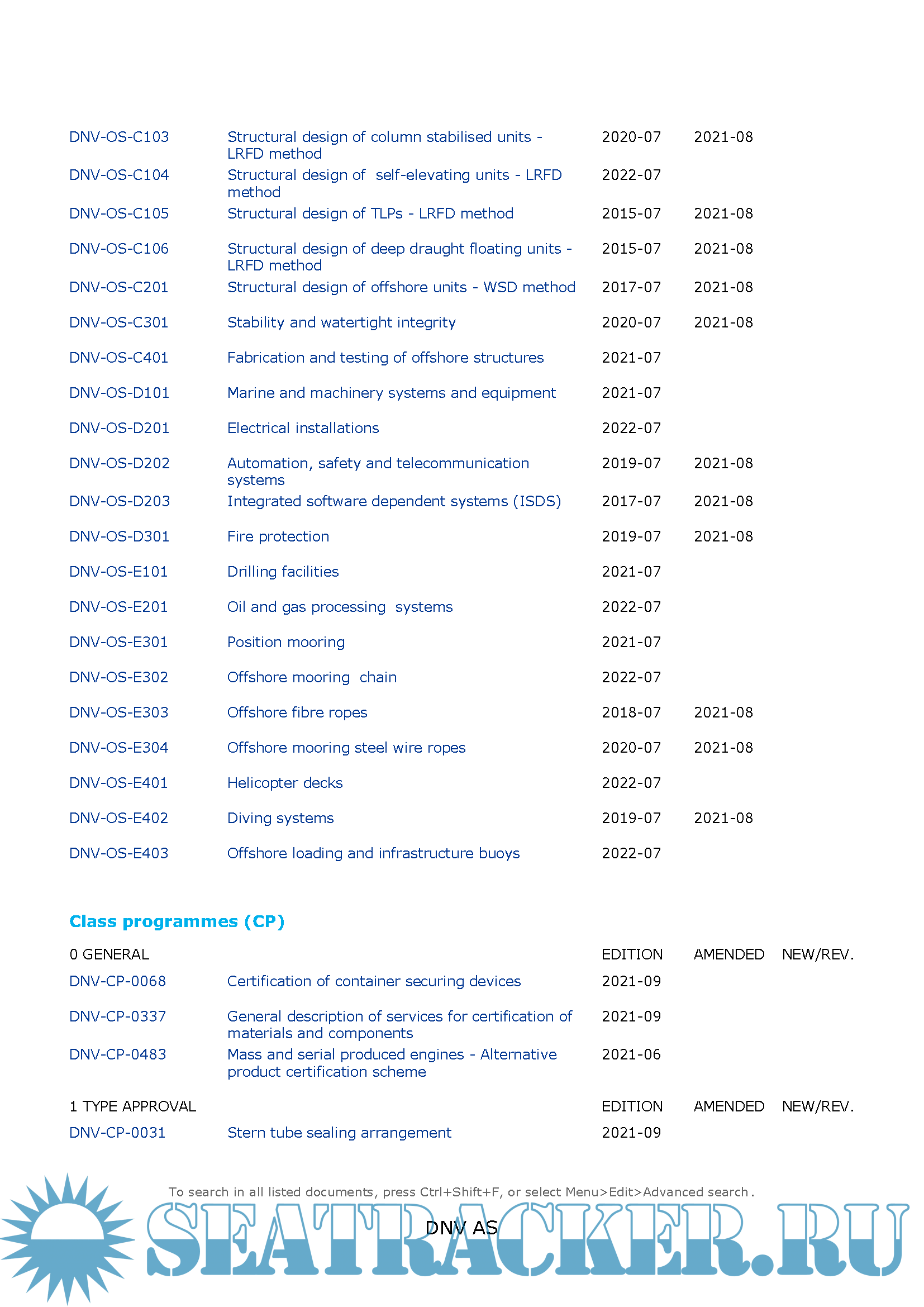 (DNV)- All rules for classification, class programmes, class guidelines, offshore standards and…