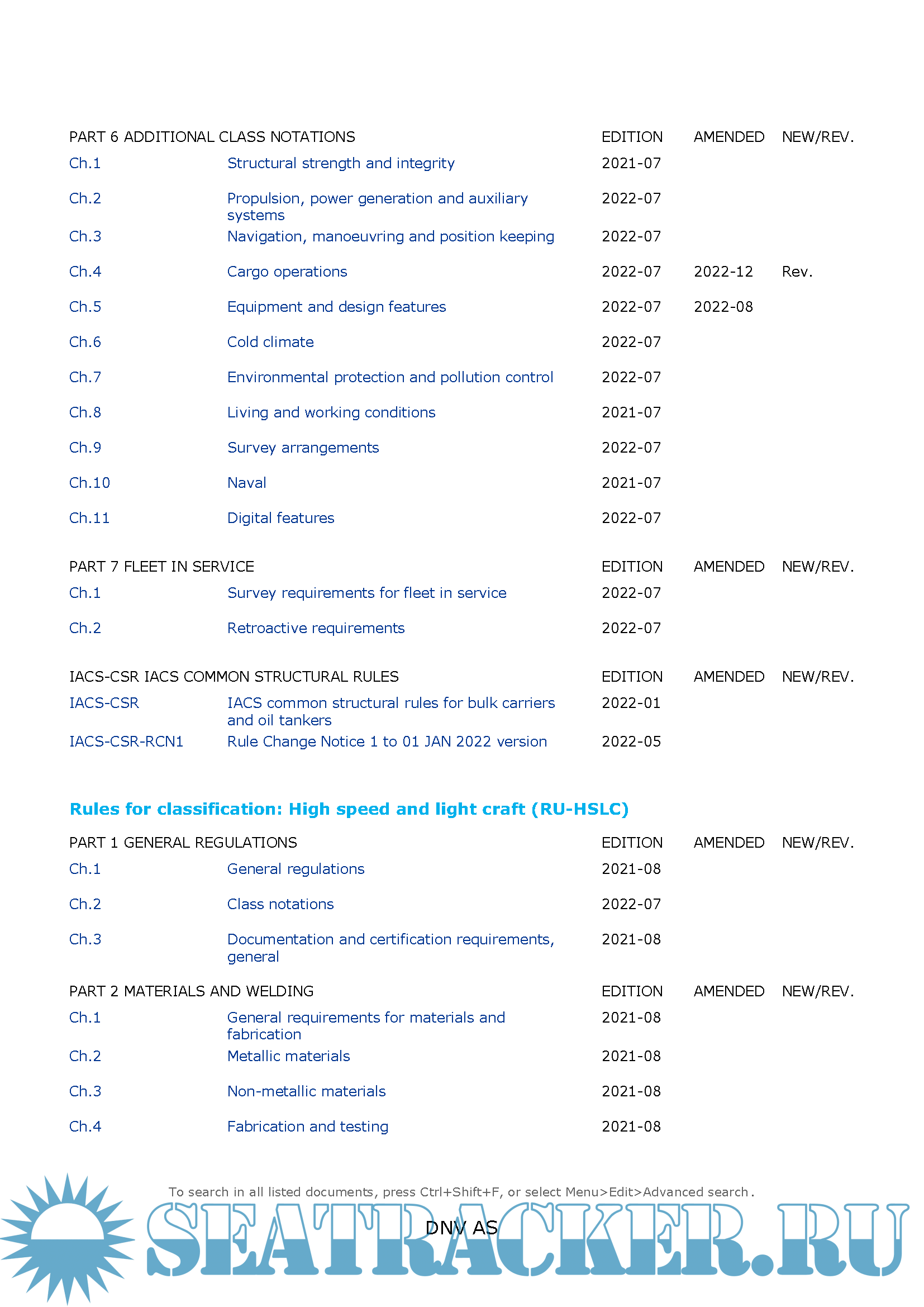 Description: Rules for classification, class programmes, class guidelines, offshore standards and statutory interpretations cover 360 files, 23553 pages, updated at 2023-02