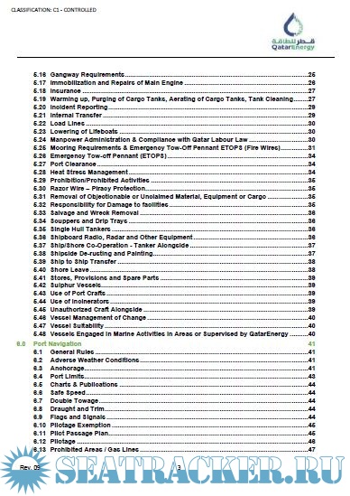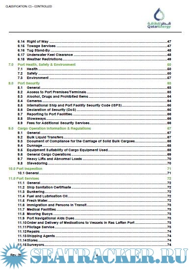 Description: This document has been written for reference and use by all the port users namely masters of seagoing vessels calling Ras Laffan Port, Agents, Shipping lines, Consignees, Shippers, publishers of nautical information and or any other party that transacts business through the Port.