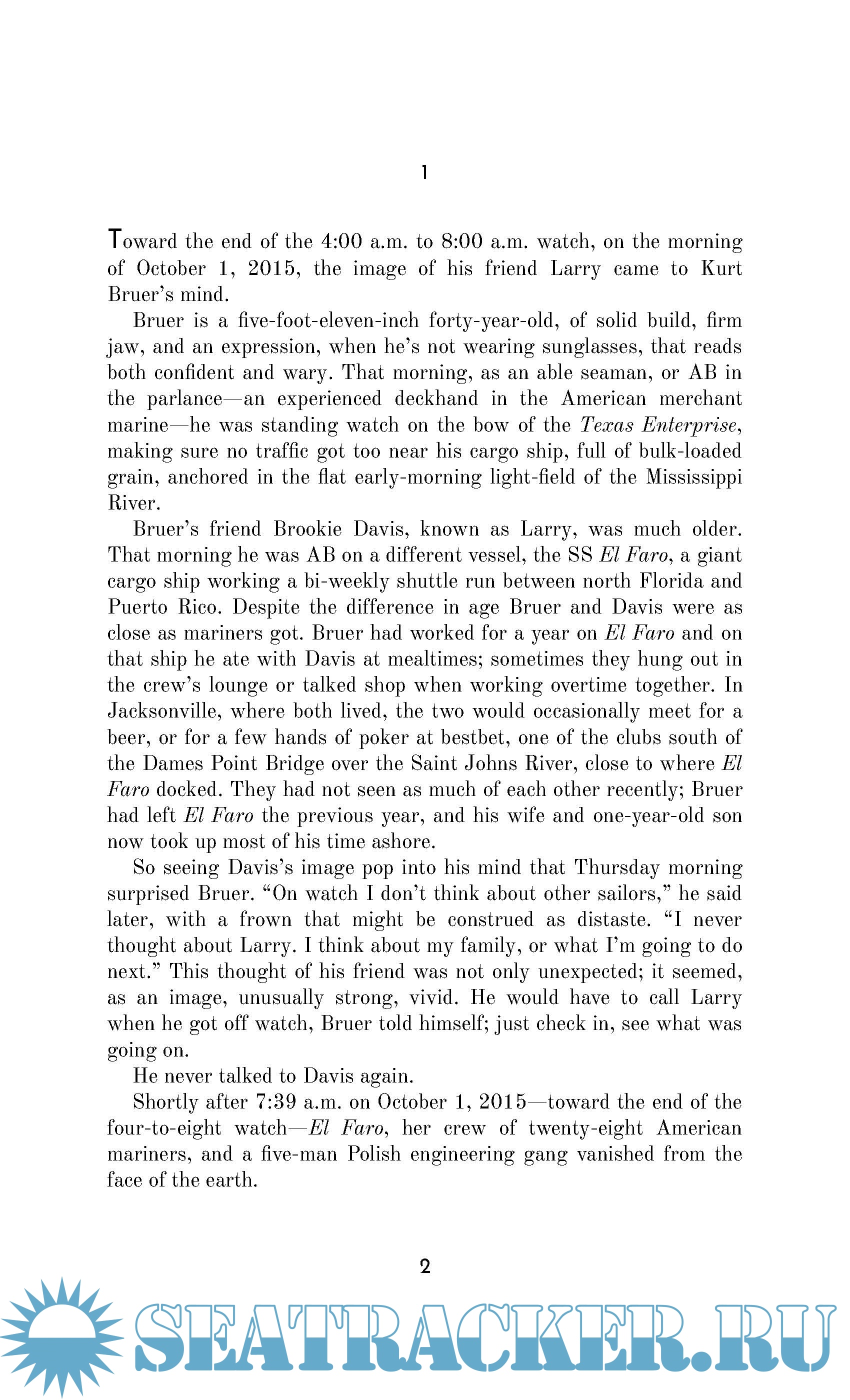 Year: 2019 Language: english Author: George Michelsen Foy Genre: History Publisher: Scribner Edition: Reprint edition (6 Aug. 2019) ISBN: 9781501184918 Format: EPUB/PDF Quality: eBook Pages count: 288 Print length Description: On October 1, 2015, the SS El Faro, a massive American cargo ship disappeared in Hurricane Joaquin, a category 4 storm. The ship, its hundreds of shipping containers, and its entire crew plummeted to the bottom of the ocean, three miles down. It was the greatest seagoing US merchant marine shipping disaster since World War II. The massive ship had a seasoned crew, state-of-the-art navigation equipment, and advance warning of the storm. It seemed incomprehensible that such a ship could sink so suddenly. How, in this day and age, could something like this happen? In the bestselling tradition of The Perfect Storm and The Finest Hours, “an exquisitely written and dramatic book…a literary page-turner” (Doug Stanton, #1 New York Times bestselling author of Horse Soldiers)—the 2015 mysterious disappearance of the SS El Faro, a gigantic American cargo ship that sank in the Bermuda Triangle, taking with it thirty-three lives. Audiobook:
