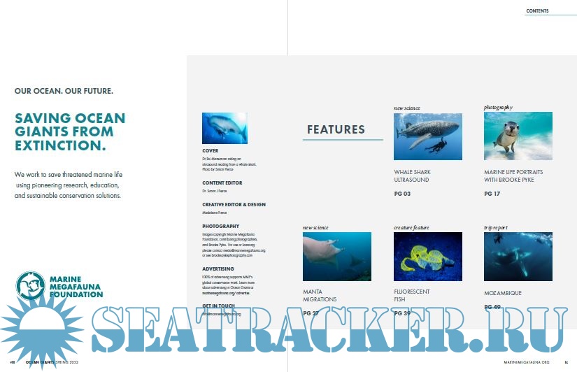 Year: 2023 Language: english Author: MMF Genre: Periodical (magazine) Publisher: Marinemegafauna.org Edition: Issue 07 Format: PDF Quality: eBook Pages count: 35 Description: Featuring: Whale shark ultrasounds, and how this is definitely a thing. International movements in manta rays, and why we’re very excited about it We’ve recruited award-winning photographer Brooke Pyke to share her expert advice on capturing marine life portraits, now that she’s already won everything. :P Go down the rabbit hole of biofluorescence in fish, and why the most camouflaged fish are often the shiniest. Join our latest MMF dive trip, exploring our favorite sites along the Mozambique coast – then go find lions too (hopefully!).