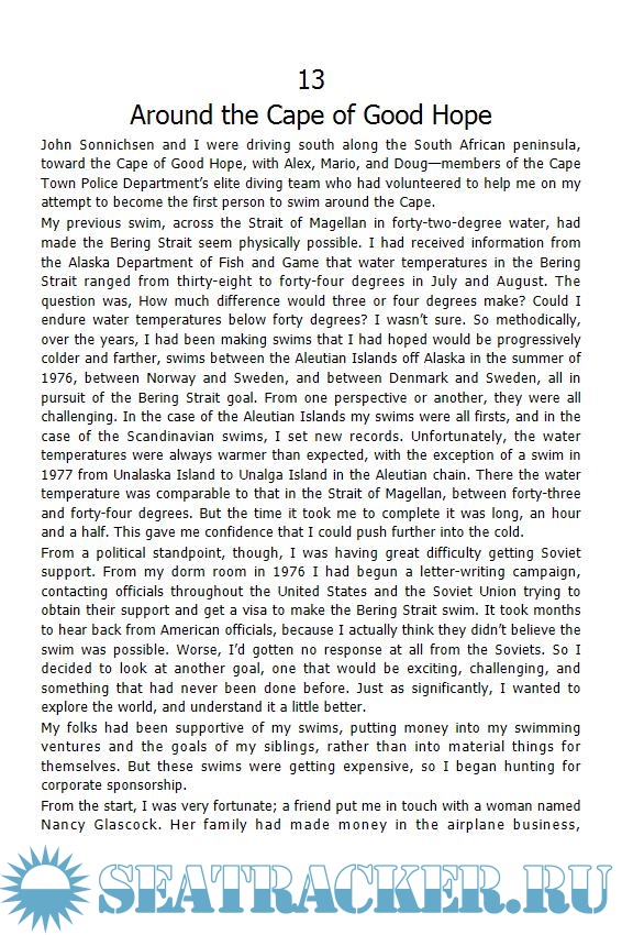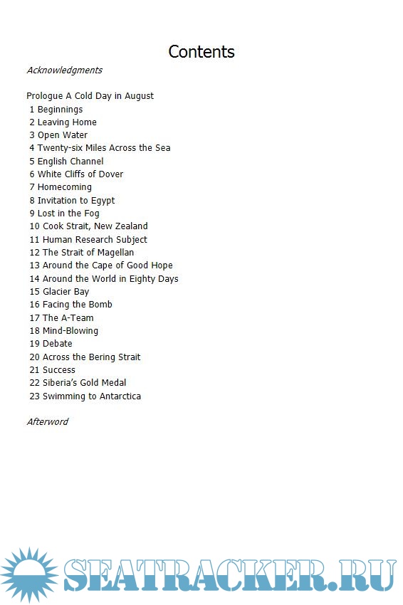 Year: 2004 Language: english Author: Cox L. Genre: History Publisher: Mariner Books Edition: 1st ISBN: 0156031302 Format: EPUB Quality: eBook Pages count: 236 Description: International Swimming Hall of Famer and Alex Award-winner Lynne Cox's classic sports memoir Swimming to Antarctica is "a portrait of rare and relentless drive" (Sports Illustrated).Here is the acclaimed life story of a woman whose determination inspires everyone she touches. Lynne Cox started swimming almost as soon as she could walk. By age sixteen, she had broken all records for swimming the English Channel. Her daring eventually led her to the Bering Strait, where she swam five miles in thirty-eight-degree water in just a swimsuit, cap, and goggles. In between those accomplishments, she became the first to swim the Strait of Magellan, narrowly escaped a shark attack off the Cape of Good Hope, and was cheered across the twenty-mile Cook Strait of New Zealand by dolphins. She even swam a mile in the Antarctic.Lynne writes the same way she swims, with indefatigable spirit and joy, and shares the beauty of her time in the water with a poet's eye for detail. And this paperback edition of Swimming to Antarctica expands upon the detail of her extraordinary atheleticism with exclusive photos and maps throughout. Additional info: About the Author LYNNE COX has set records all over the world for open-water swimming. She was named a Los Angeles Times Woman of the Year, inducted into the International Swimming Hall of Fame, and honored with a lifetime achievement award from the University of California, Santa Barbara. She is the author of Swimming to Antarctica, which won an Alex Award. She lives in Los Alamitos, California.