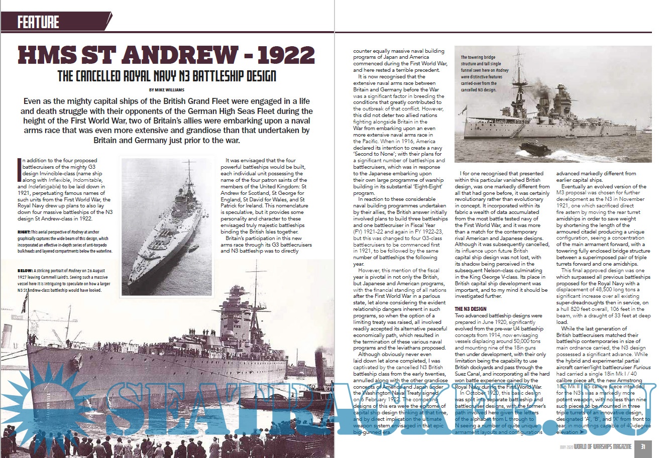 We will have a Naval news section from around the world, features on famous people, conflict at sea, fascinating historical accounts and exciting places of interest that you can visit today. World of Warships will also feature some excellent naval paintings from the brushes and easels of leading Naval artists, plus superb, highly detailed, fold-out, triple gatefolds, featuring profile artworks in every issue, created by Andrew Hay.
