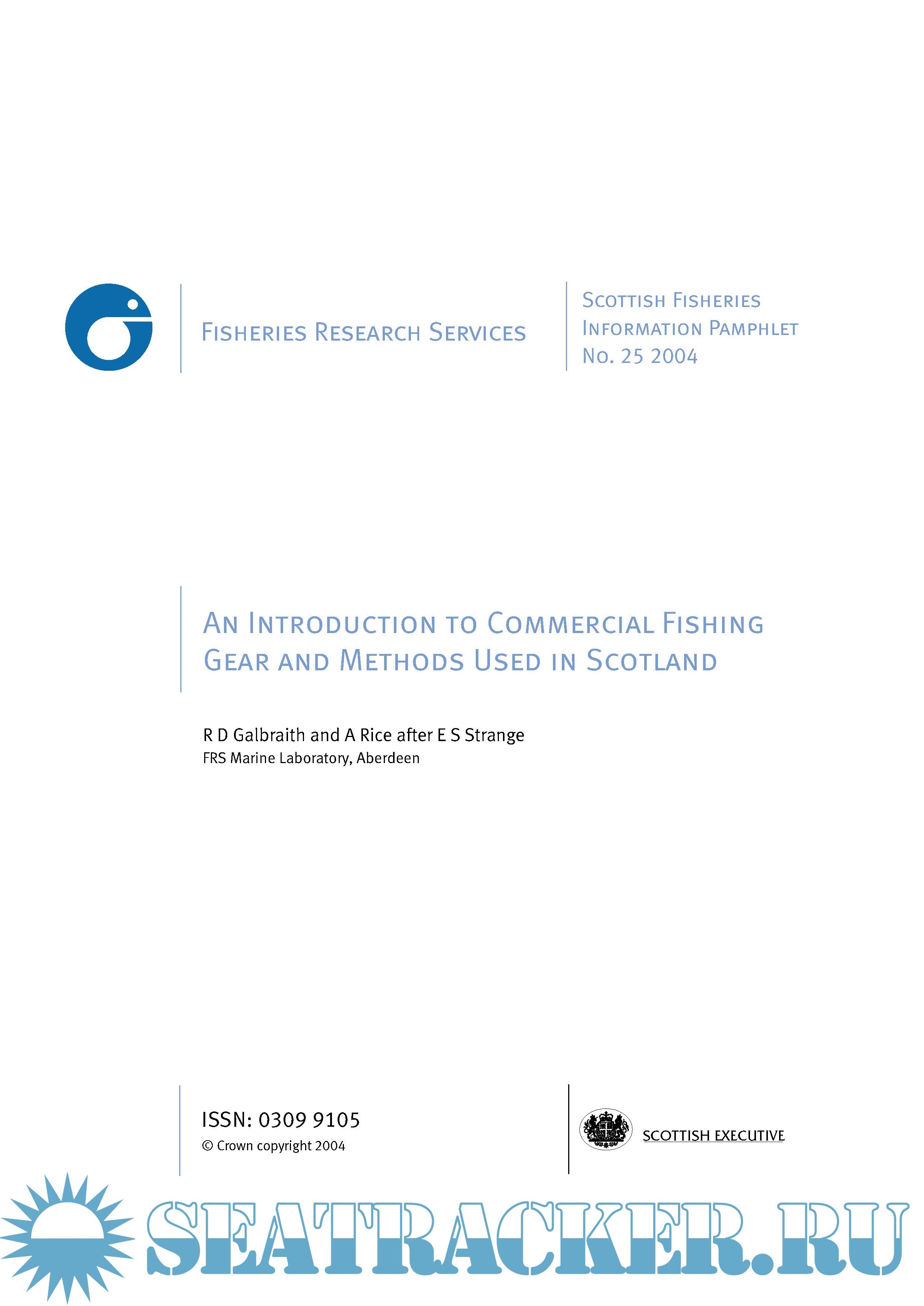 Year: 2004 Language: english Author: R D Galbraith and A Rice after E S Strange FRS Marine Laboratory, Aberdeen Genre: Guide Edition: 3 Format: PDF Quality: eBook Number of pages: 44 Description: For those who for professional reasons need to know something about fishing gear and methods used today, or those who simply would like to know about the gear and methods used to catch the fish they eat, this booklet is offered as an introduction. The main types of fishing gear used by Scottish fishermen and the species for which they are used are listed in the next section. Описание актуальных методов рыболовства в водах Северной Атлантики Additional info: Наиболее полное описание актуальных методов промышленного рыболовства