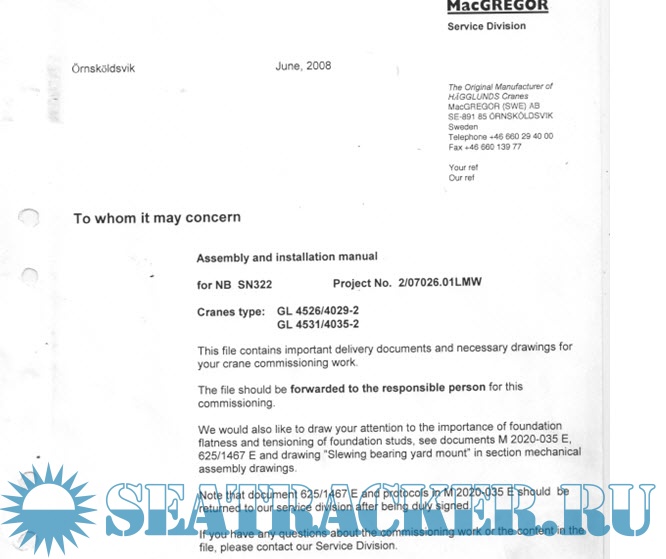MacGregor Crane Type: GLBE3025-2/2425gr Instruction Manual - MacGREGOR [2012, PDF]
