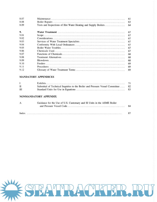 This Code contains mandatory requirements, specific prohibitions, and nonmandatory guidance for construction activities. which presents guidelines for the safe and efficient operation of steam-heating boilers, hot-water-supply boilers, and hot-water-heating boilers after installation. These rules are nonmandatory unless they are adopted into the laws of a governmental jurisdiction. The chapter is divided into nine parts, along with the necessary figures and tables for each part.