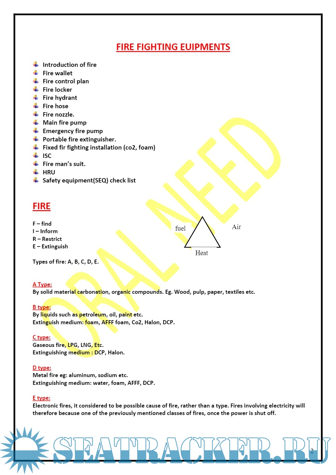 Notes for The Second Mate: Fire Fighting Appliances Code
