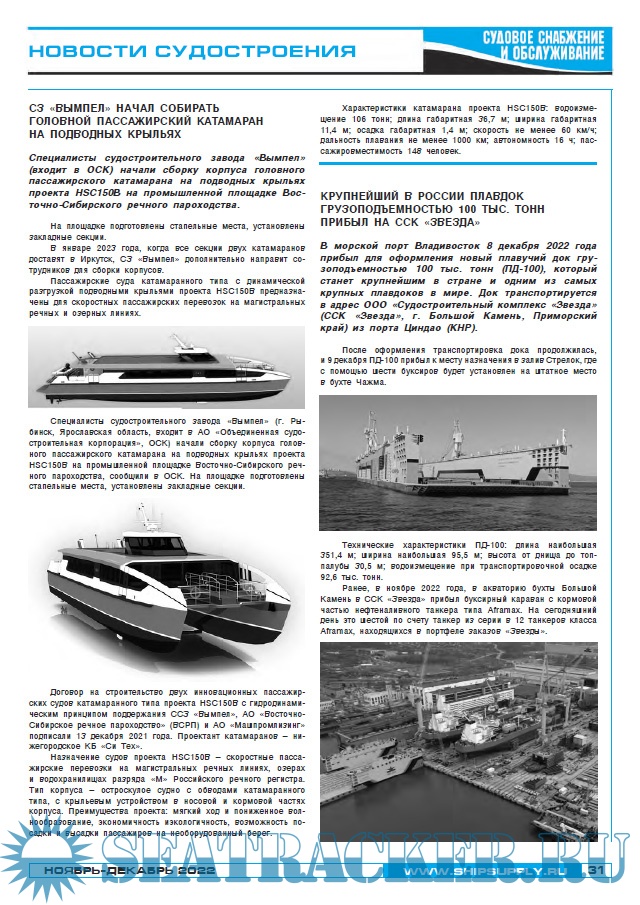 Описание: Судовое снабжение и обслуживание - периодический информационный бюллетень, издается с 1999 года и в настоящее время по праву занимает одно из ведущих мест среди специализированных отраслевых печатных изданий.Бюллетень стал надежным маркетинговым инструментом для технического менеджмента судостроительных, судоремонтных и снабженческих компаний. Более 500 отечественных и зарубежных фирм рекламодателей успешно сотрудничают с журналом с целью расширения своего бизнеса.Бесспорным преимуществом является бесплатное распространение издания целевой адресной рассылкой: судостроительным и судоремонтным предприятиям; морским и речным портам; судовладельцам морского, речного, промыслового флота; производителям и поставщикам судового оборудования, снабжения и материалов; предприятиям обслуживания флота (всего более 9000 компаний РФ).В журнале представлен весь спектр судового оборудования, комплектующих, запчастей, снабжения и материалов (с указанием контактных данных фирм производителей и поставщиков).