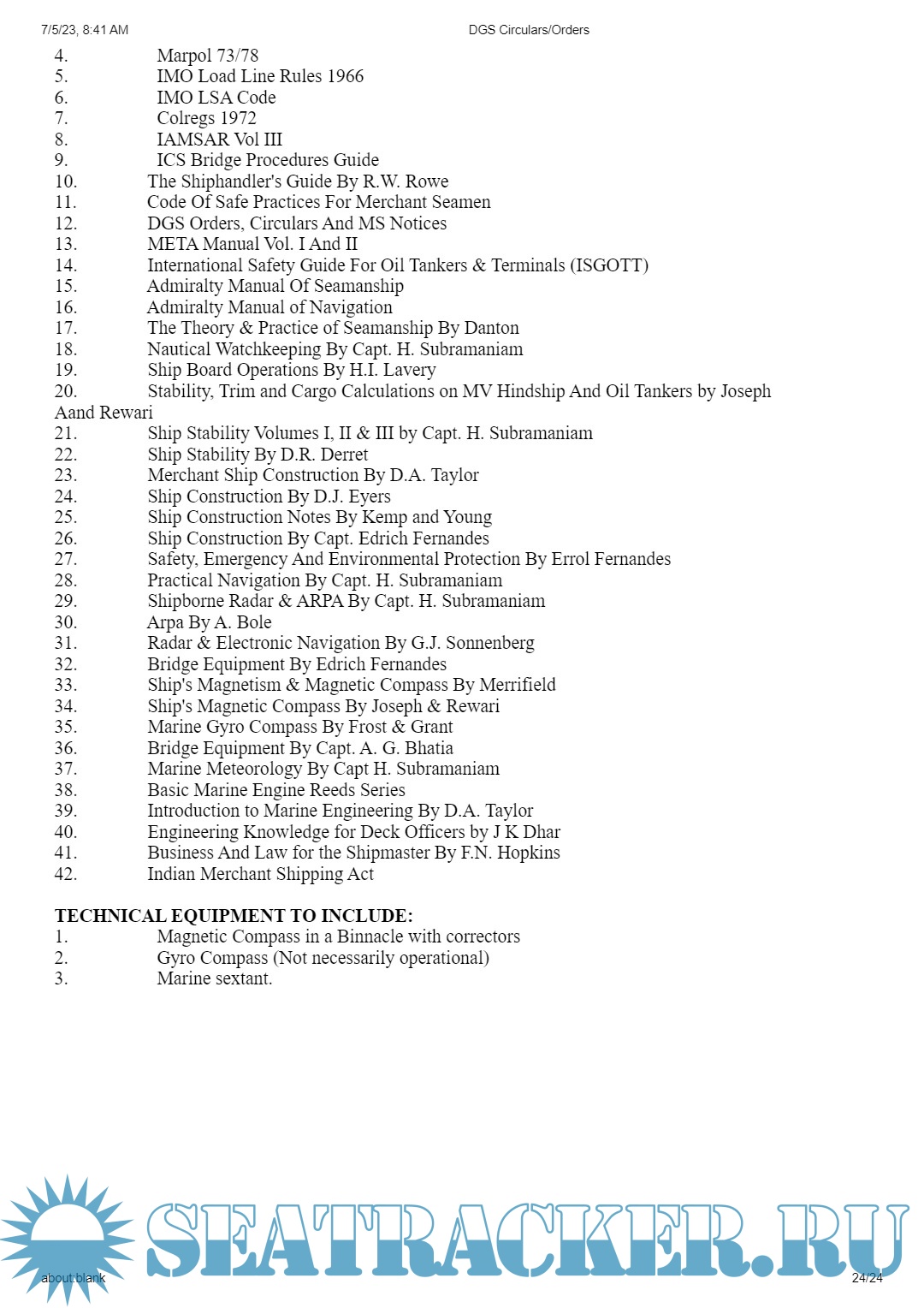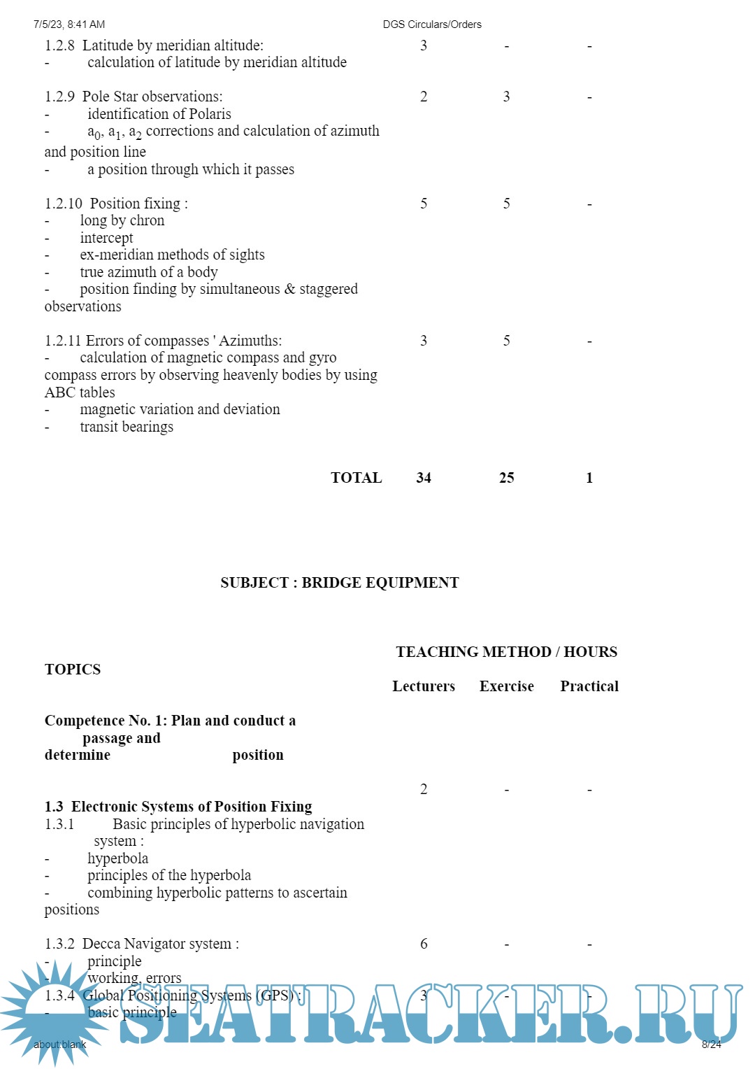 Syllabus for NWKO (NCV) Course of Mercantile Marine Department (MMD), India Examinations