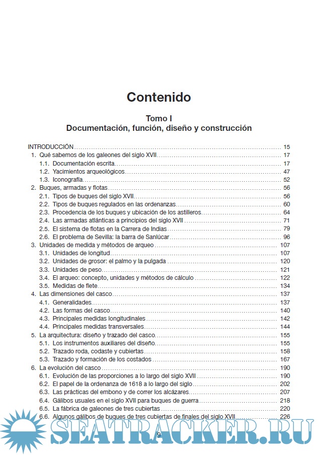 Les fonts d’informació, la Cursa d’Índies, les Armades Reials, les unitats de mesura utilitzades en l’àmbit naval, la problemàtica dels arqueigs, les ordenances de construcció, el disseny de vaixells i la seva evolució, les drassanes, els materials, la anatomia del casc, l’arbradura, els aparells, les espelmes, els proveïments i l’artilleria formen un complet programa de temes que són tractats amb cura.