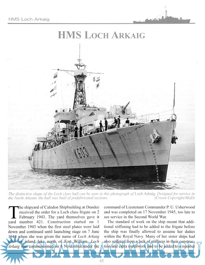 Description: The Loch class was to prove to be amongst the best A/S frigates produced by Great Britain during the war, although most of the class only entered service from 1944 onwards. 110 ships were projected, but with the end of the war only 28 were completed as such. This volume records the design and service record of these vessels.