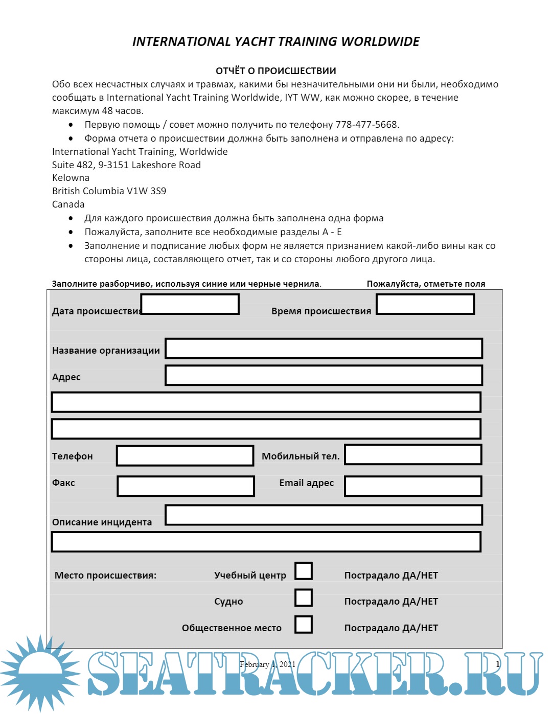 форма отчета о проишествии необходима для чартерных и страховых компаний а так же port police