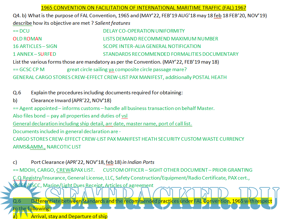 Maritime Legislation Ques (topic wise sorted) - May'22 to Feb'18