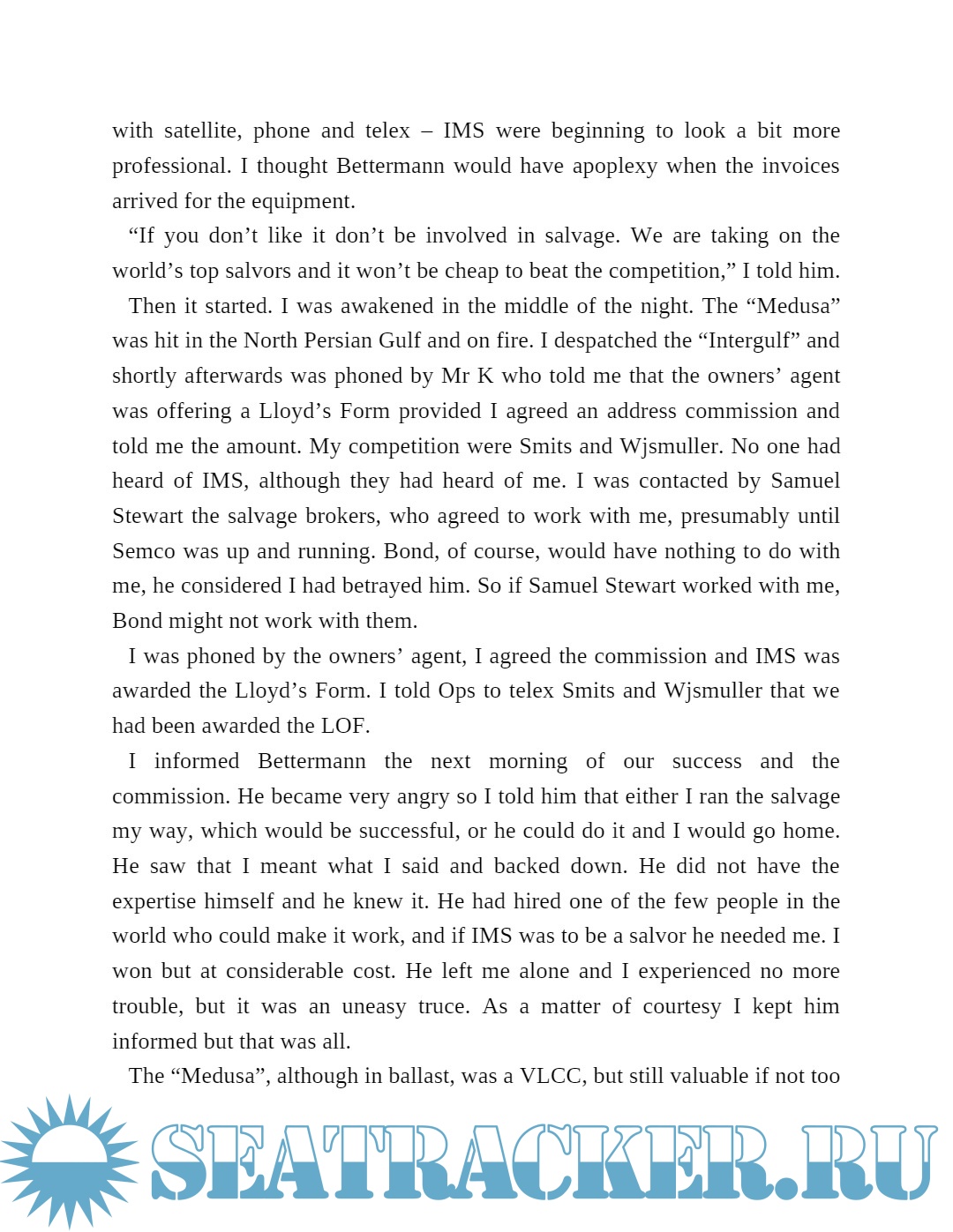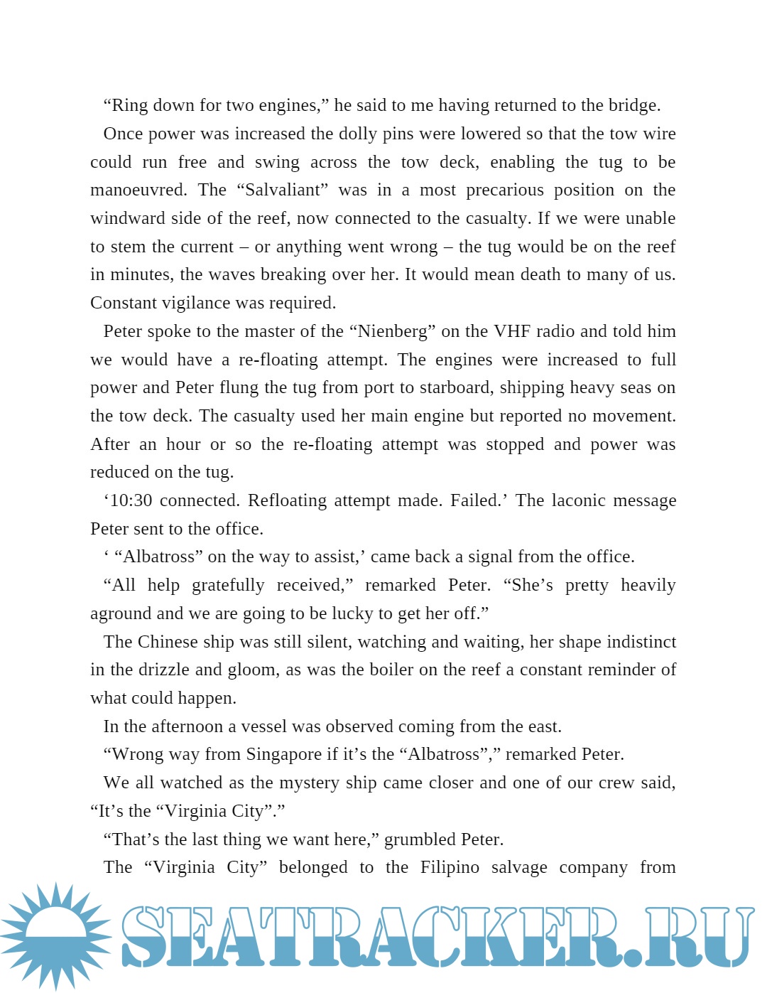 Year: 2018 Language: english Author: Ian Tew Edition: Kindle Format: PDF Quality: eBook Pages count: 252 Description: ‘My living was made on the sea, my greatest pleasures have been sailing on the sea, my inspiration has come from the sea, the very reason to live has been the sea...’ By the age of seven, Ian Tew had learnt to sail and by his eighth birthday he became the owner of “Titwillow”, a yellow sailing dinghy. It marked the beginning of what was to be a life at sea. After attending the Pangbourne Nautical College, which was an ominous experience, Ian left his seafaring family to join British India Steam Navigation as a cadet. He was assigned to a ship on the East African run and then, in 1962, he flew to Bombay on his first flight as an officer in training to join the infamous deck passenger ship the ‘Dara’. The tragedy that followed was the biggest peacetime disaster to strike a British ship since the Titanic. Following survival leave, Captain Tew was sent to Calcutta, where he spent two months in hospital drifting in and out of a coma from fever. An East African voyage was next and it would be two years before a return to England was on the horizon. As a young officer in the British Merchant Navy, Ian progressed in his career and went on to become a prominent Salvage Master - joining Selco Salvage of Singapore in 1974. He navigated the busy waters of the Middle and Far East, salved vessels from the shores of the UK to the Japanese Coast, was arrested in Massawa Ethiopia during the war with Eritrea, culminating with the Iran Iraq War. Ian Tew’s story, recounted while stranded in Tahiti, provides a fascinating insight into a life of voyage and discovery, of expert seamanship, salvage and courage. Life may often be dangerous at sea, but it is seldom dull.