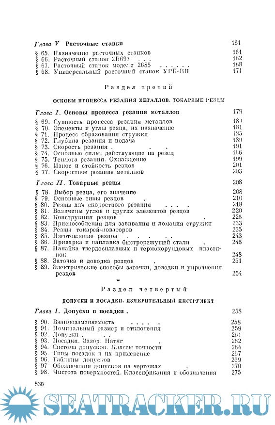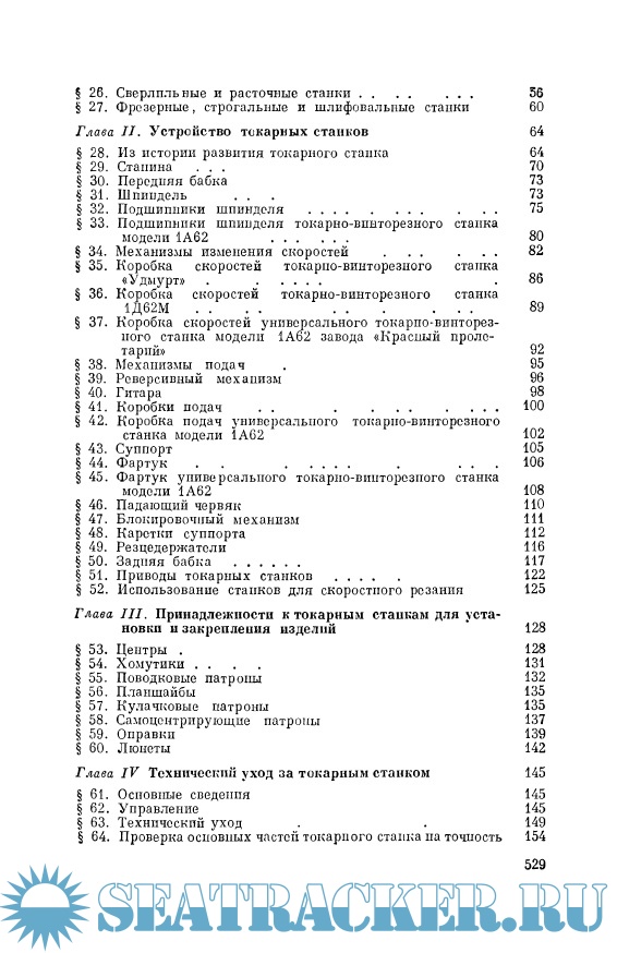 Год выпуска: 1958 Язык: русский Автор: С.В.Ятченко Жанр: Учебное пособие Издательство: Сельхозгиз Формат: PDF Качество: Отсканированные страницы Количество страниц: 536 Описание: В книге приведены сведения об основных материалах, применяемых при изготовлении и восстановлении деталей тракторов, автомобилей, комбайнов и других сельскохозяйственных машин; описано устройство токарных станков и работа на них; даны основные сведения об устройстве и работе расточных станков; рассмотрены основные вопросы процесса резания металлов, допусков и измерений; изложены способы скоростного резания и методы работы токарей-скоростников.