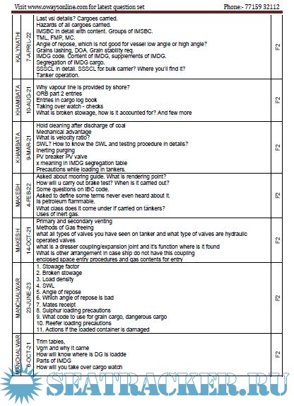 Description: 2nd Mate MMD Orals Exams Surveyor Question Set Mumbai.Question set arranged in the order Functions / surveyors / Dates.