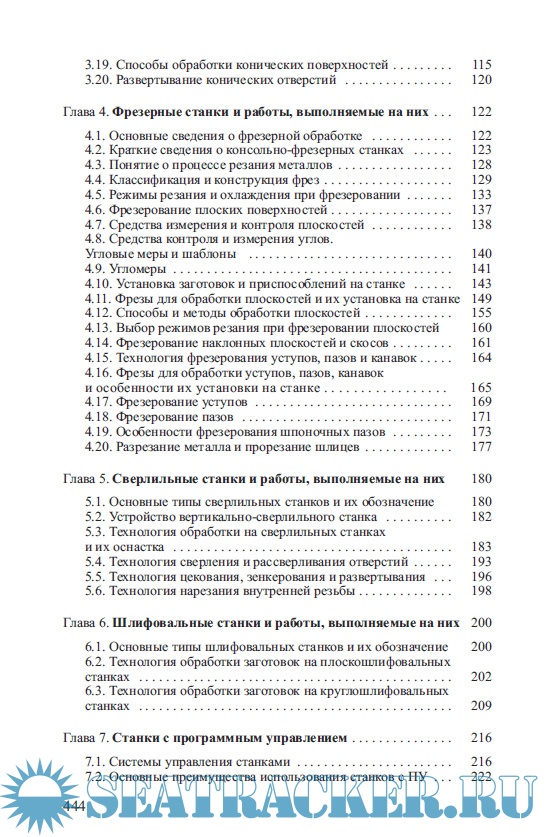 Описание: Приведены сведения об обработке металлов резанием, о механизмах и деталях машин. Подробно описаны токарные, фрезерные, cверлильные и шлифовальные станки, а также станки с программным управлением (токарные, фрезерные, сверлильные, расточные и многоцелевые). Расcмотрены технологии обработки металла резанием и применяемый инструмент.