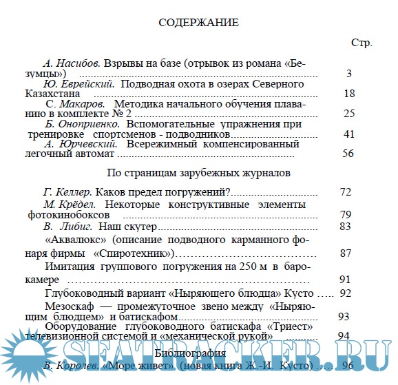 Описание: На страницах сборника вы прочтете интересные статьи наших ведущих тренеров и мастеров спорта, узнаете о новой технике и снаряжении, об увлекательных подводных путешествиях и открытиях.