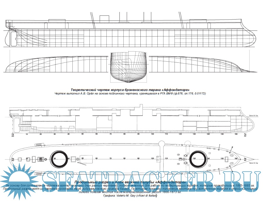 В данной работе, на основе архивных данных и материалов русской и зарубежной открытой печати, подробно изложены история создания, описание конструкции и история службы этого, безусловно, интересного корабля, а также содержится другая информация по истории итальянского флота второй половины XIX века.