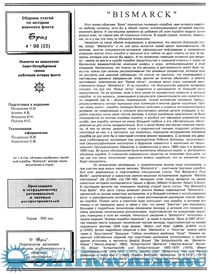 Год выпуска: 1998 Язык: русский Автор: Печуконис Н.И., Аликин А.Б.(редакторы) Жанр: Периодическое издание (журнал) Издание: 1998-04 Формат: PDF Качество: Отсканированные страницы Количество страниц: 44 Описание: Сборник статей по истории флота