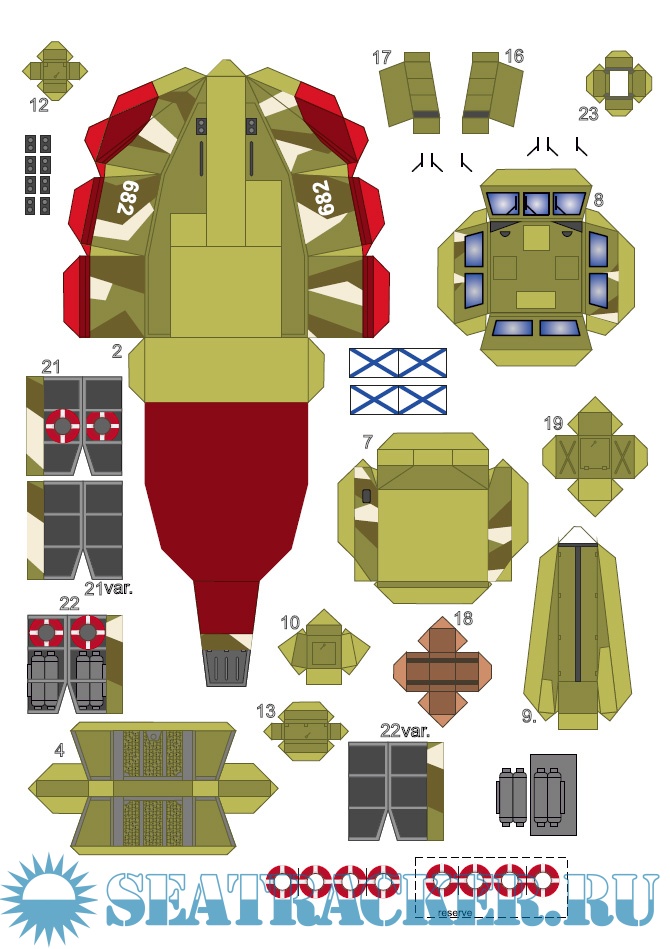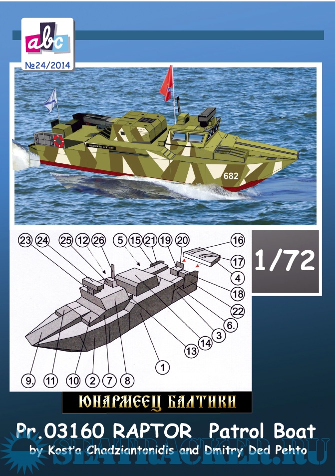 Описание: 13 листов цветных выкроек и инструкций для создания модели из бумаги патрульного катера РАПТОР ''Юнармеец Балтики''
