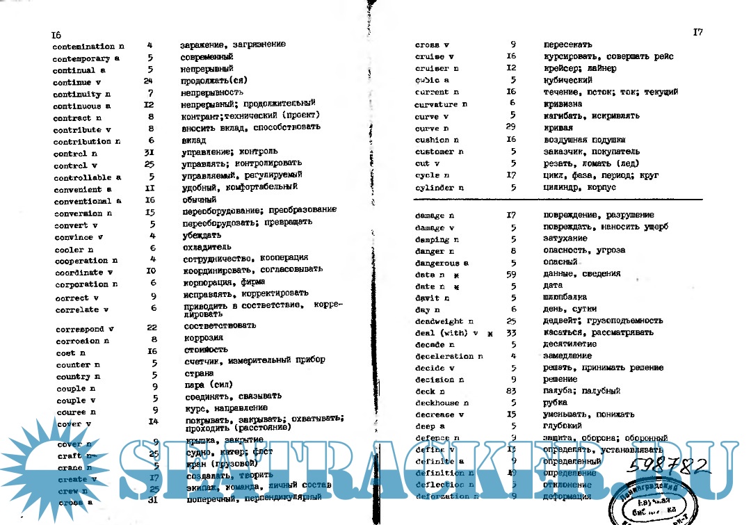 Описание: Настояние лексико-терминологические материалы предназначены для студентов, преподавателей, аспирантов и соискателей высших учебных заведений кораблестроительного профиля. Цель данного материала — помочь учащимся научиться читать оригинальную научно-техническую литературу на английском языке и вести беседу по своей специальности. Лексико-терминологические материалы состоят из двух разделов: алфавитно-частотного списка английских слов и их русских эквивалентов и частотного списка английских слов.