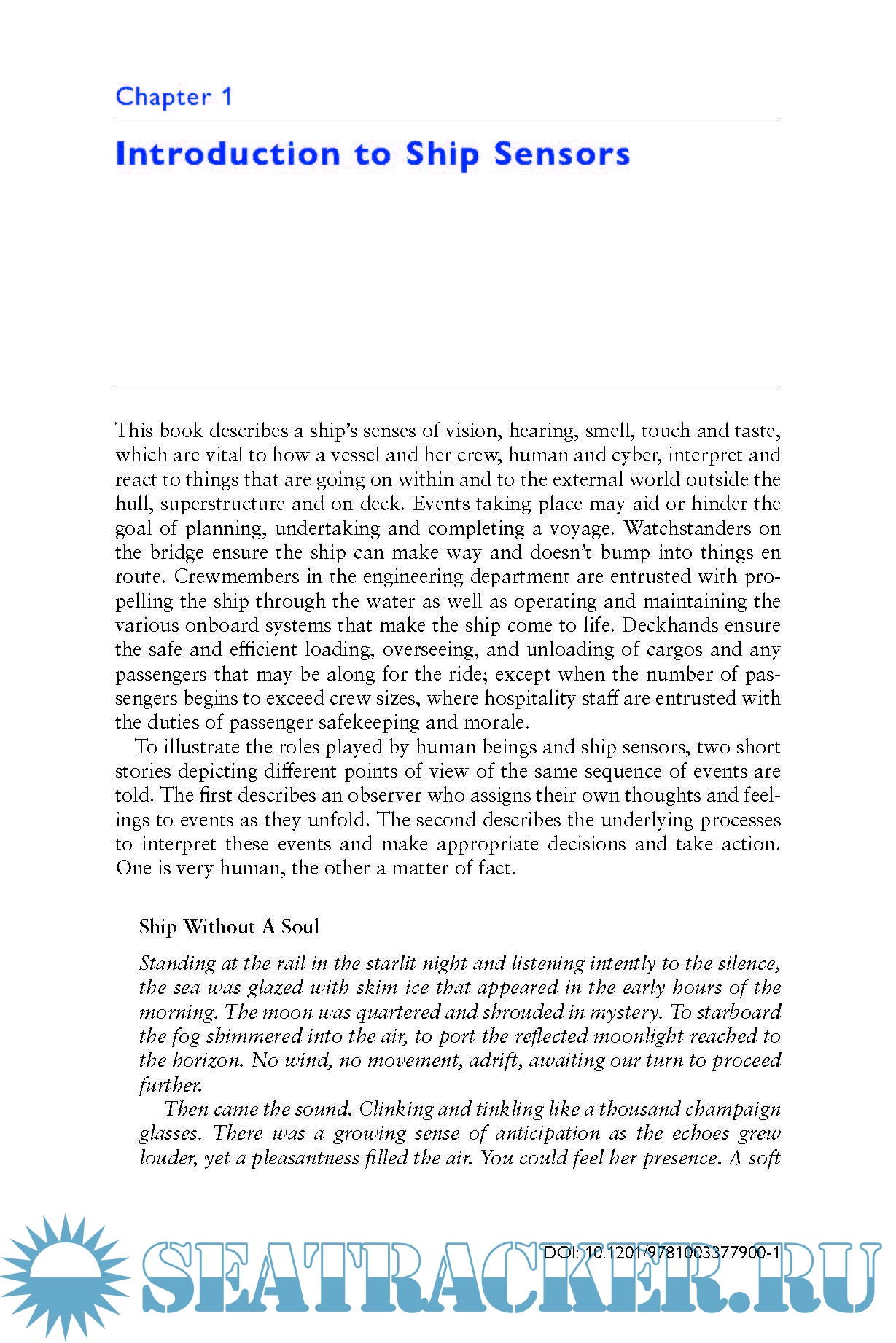 Year: 2024 Language: English Author: Glenn Wright Genre: Other Publisher: Routledge Edition: 1st (February 29, 2024) ISBN: 9781003377900 Format: PDF Quality: eBook Pages count: 267 Description: When combined with artificial intelligence, advanced computing architectures and enhanced communications, sensor technologies can monitor vessel performance and the adjacent environment to detect conditions that may hinder voyage completion. This book provides insight into the present and future of sensor architectures and configurations that can enhance vessel performance and further improve the safety of navigation. It covers topics such as traditional and expanded sensor functions in engineering and navigation, as well as new sensor capabilities that can provide greater insight into vessel behavior and performance and enhance awareness of passenger, crew and other human activities. Chapters offer background information on typical legacy vessel sensor configurations and current International Maritime Organization (IMO) requirements for onboard sensors and future regulatory trends before discussing modern sensors and current- generation “smart” sensors that provide enhanced situational awareness to watchstanders. A vision of next- generation sensors currently being investigated for shipboard use is provided along with long- term trends in quantum sensing and computing that promise radical change across a wide variety of vessel functions. Insight is also given into cybersecurity factors so essential to all sensor systems. Ship Sensors: Conventional, Unmanned and Autonomous is ideal for professional seafarers, maritime academics and university students, and developers of maritime sensors and systems.