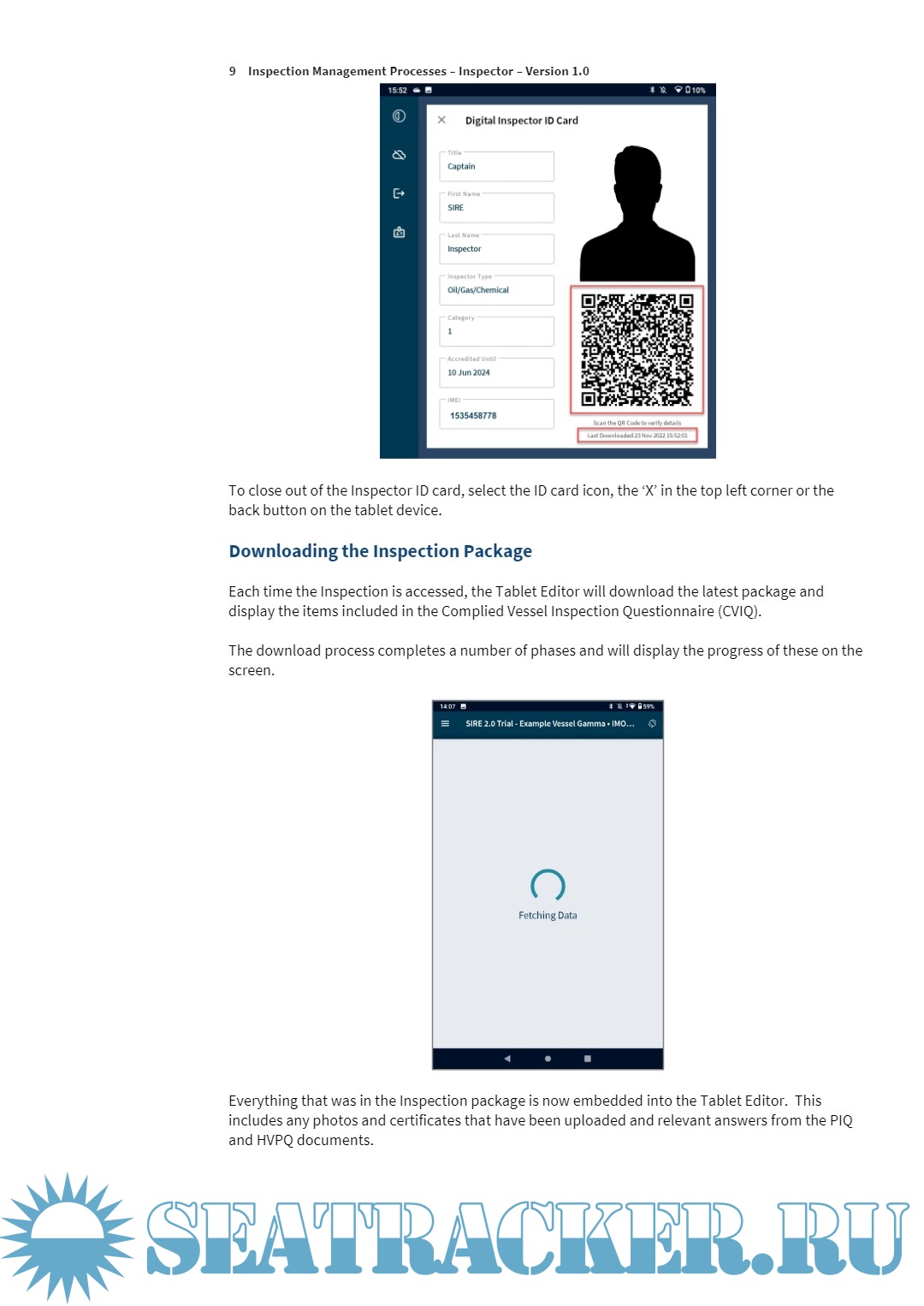 Description: This booklet guides SIRE Inspector to manage SIRE 2.0 Inspection including retrieving all the data of vessel , management of the data of the tablet allotted for the inspection , HVPQ data of the vessel etc.