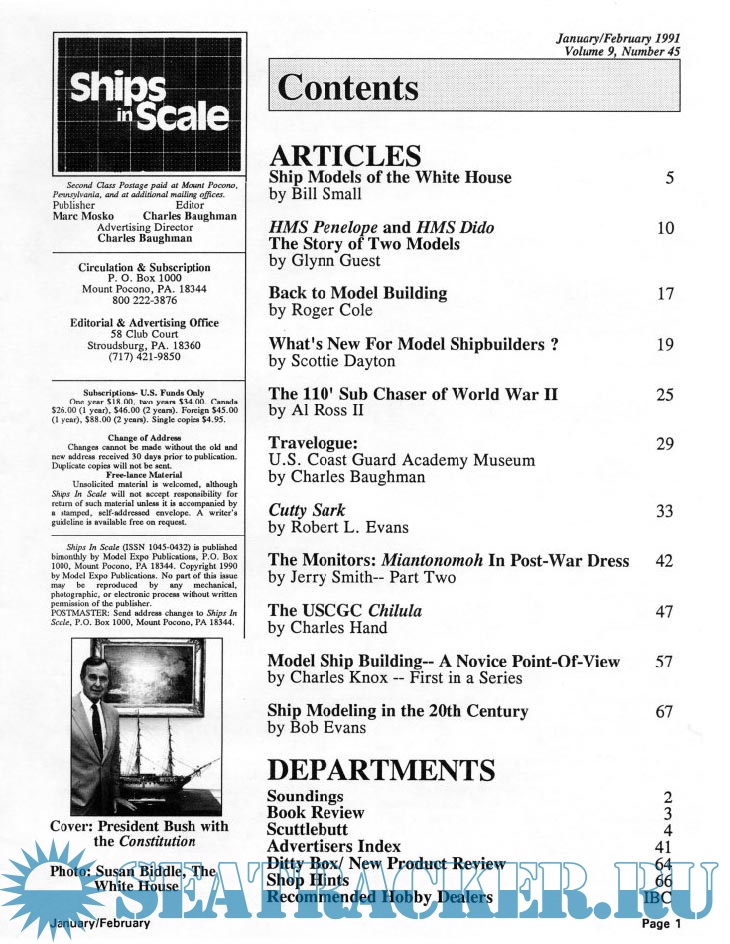 Year: 1991 Language: English Author: Scottie Dayton (Editor) Genre: Periodical (magazine) Edition: 1991-1 Format: PDF Quality: Scanned pages Pages count: 88 Description: Seaway is the home port for Seaways Ships in Scale magazine, the leading workshop and research magazine for the ship modeler. In the magazine we explore all levels of modeling experience, all types of ships, all kinds of models, all historical eras and all construction materials