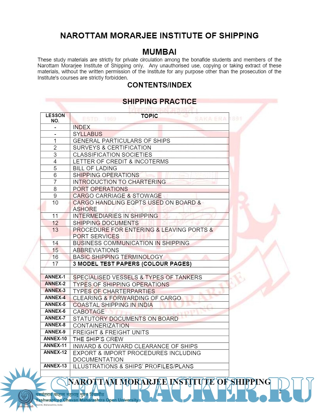 Shipping Practices-NAROTTAM MORARJEE INSTITUTE OF SHIPPING