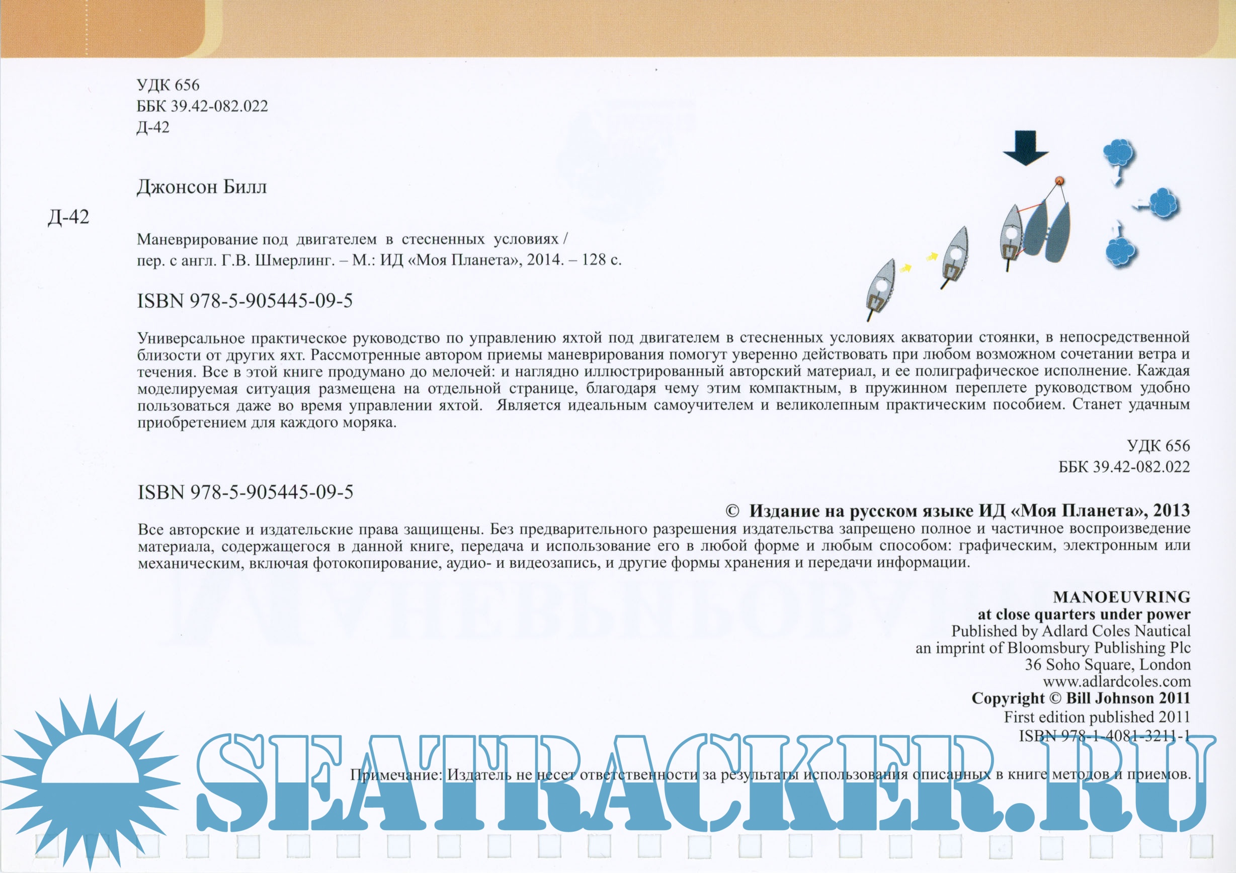 Год выпуска: 2014 Язык: русский Автор: БИЛЛ ДЖОНСОН Жанр: Учебное пособие Издательство: Моя Планета ISBN: 978-50905445-09-5 Формат: PDF Качество: Отсканированные страницы + слой распознанного текста (Adobe ClearScan) Количество страниц: 128 Описание: Универсальное nрактическое руководство no уnравлению яхтой nод двигателем в стесненных условиях акватории стоянки, в неnосредственной близости от других яхт. Рассмотренные автором nриемы маневрирования nомогут уверенно действовать nри любом возможном сочетании ветра и течения. Все в этой книге продумано до мелочей: и наглядно иллюстрированный авторский материал, и ее nолиrрафическое исnолнение. Каждая моделируемая ситуация размещена на отдельной странице, благодаря чему этим комnактным, в nружинном nереnлете руководством удобно пользоваться даже во время управлении яхтой. Является идеальным самоучителем и великолеnным nрактическим nособием. Станет удачным приобретением для каждого моряка. Доп. информация: Посмотрите мои другие раздачи: https://seatracker.info/tracker.p...id=54420#results