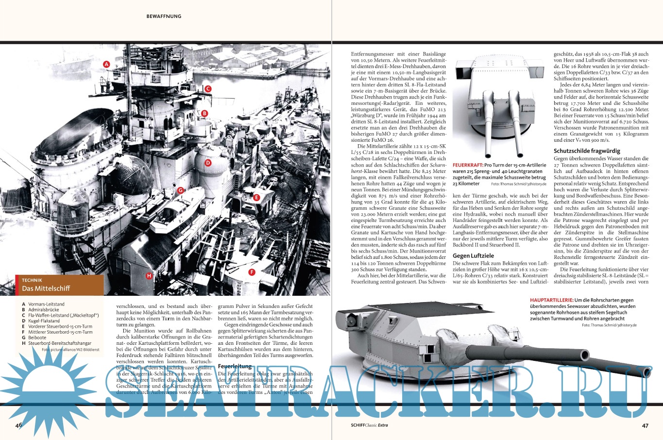 Description: Die Tirpitz war das Schwesterschiff der berühmten Bismarck und Europas größtes Schlachtschiff. Schiff Classic Extra widmet sich diesem Kampfkoloss in einer zweibändigen Ausgabe. Teil 1 reicht von 1936 bis 1941 und dreht sich um Konzeption, Bau und erste Einsätze. 3D-Illustrationen zeigen Technik in allen Details, während eine Fülle kaum bekannter Fotos die Entstehung der Tirpitz und die Verhältnisse an Bord vor Augen führen.