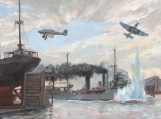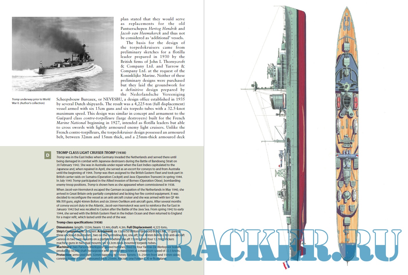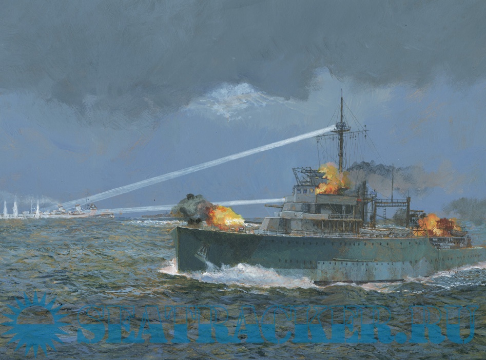 Description: In the late 19th and early 20th century, a combination of coastal defence for the homeland and fleet defence for the East Indies became the established naval strategy for the Royal Dutch Navy and set the template for the world wars. Battleships were too expensive to build and maintain, so after World War I, there was significant investment in submarine development and construction. A handful of modern light cruisers and a new class of destroyers were also constructed during the interwar years to serve as a small Fleet-in-Being in the East Indies, as well as to support the actions of the navy's submarines. The light cruiser HNLMS De Ruyter and the Java-class light cruisers were the most powerful units of the new fleet whilst the backbone of the destroyer fleet was the Admiralen-class and the Tromp-class of destroyer leaders.