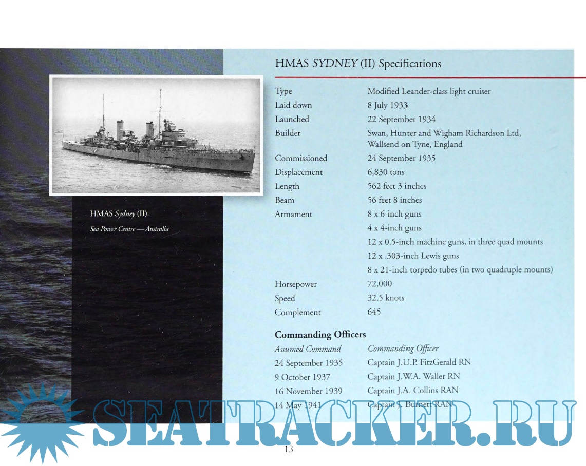 Description: The loss of the HMAS Sydney (II) is Australia’s greatest naval tragedy. Its disappearance in 1941 without a trace left a legacy of uncertainty for decades. In March 2008, renewed efforts to find the Sydney came to fruition, confirming her fate and bringing closure to the mystery.