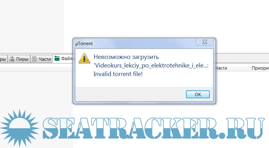 zxc, не открывается в торренте. Пишет при открытии "Невозможно загрузить Invalid torrent fail"