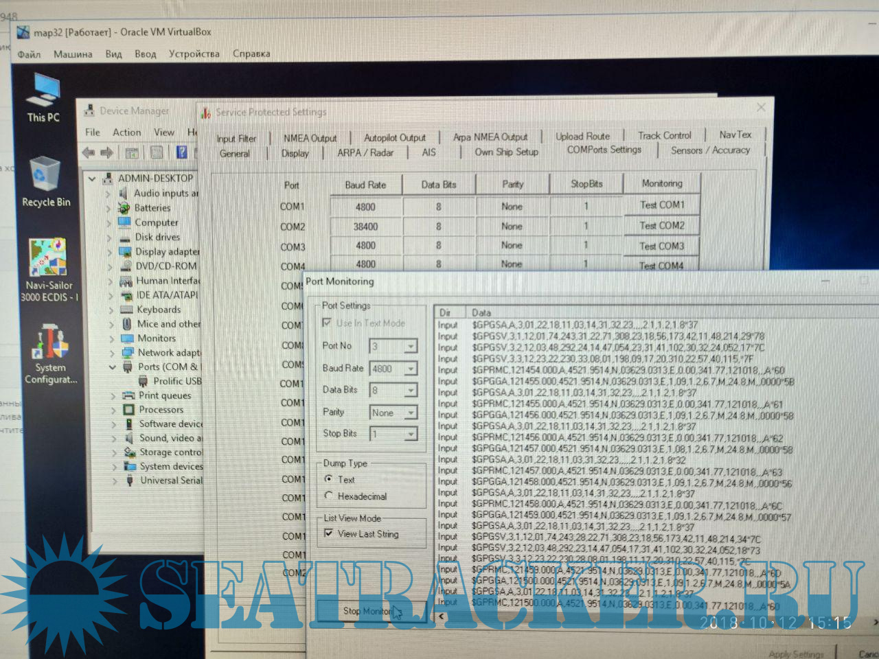 а COM3 - это реальный компорт машины, куда приходит сигнал от GPS ( ессно, пишем все латинскими буквами)