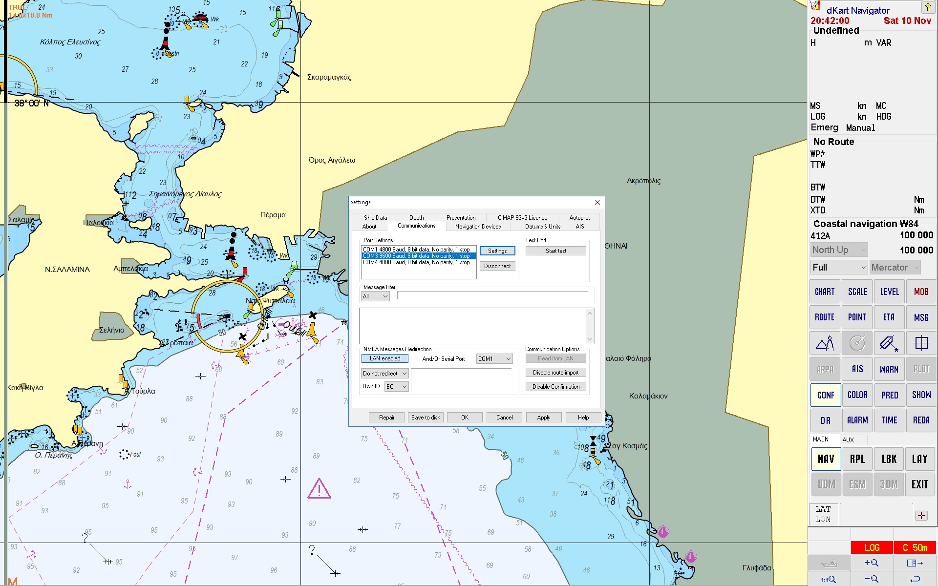 Now go to Communications,you will see the choosen port,Settings,Serial port 4 settings,set Baud Rate to 4800(leave the others as it is)Apply and OK.