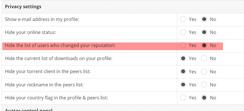 Added new privacy settings in the profile